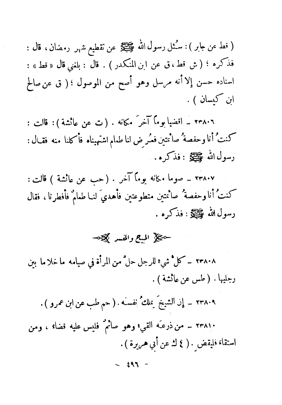 23807- "صوما مكانه يوما آخر". (حب عن عائشة) قالت: "كنت أنا وحفصة صائمتين متطوعتين فأهدي لنا طعام فأفطرنا"، فقال رسول الله صلى الله عليه وسلم: "فذكره".