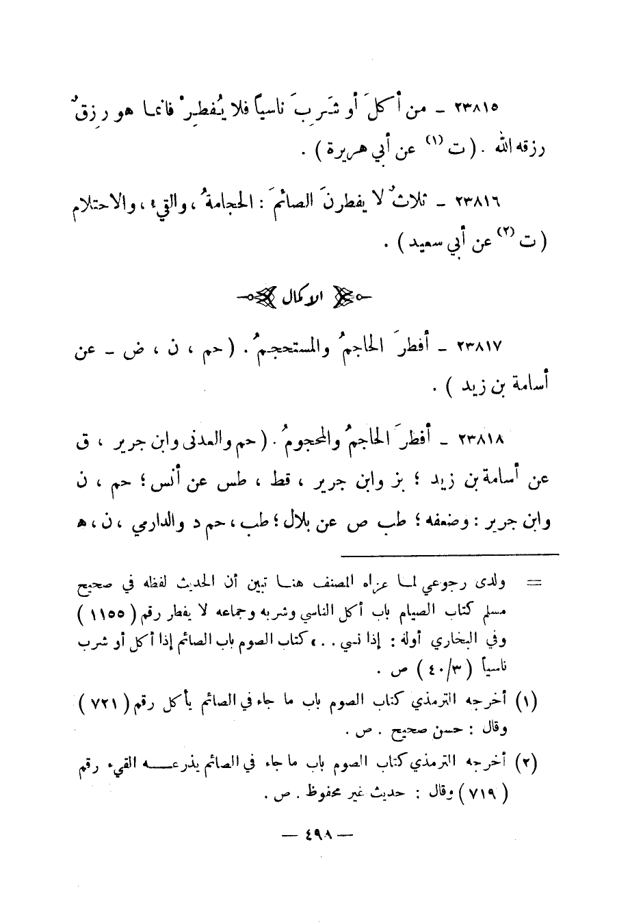 23817- "أفطر الحاجم والمستحجم". (حم، ن، ض - عن أسامة بن زيد) .