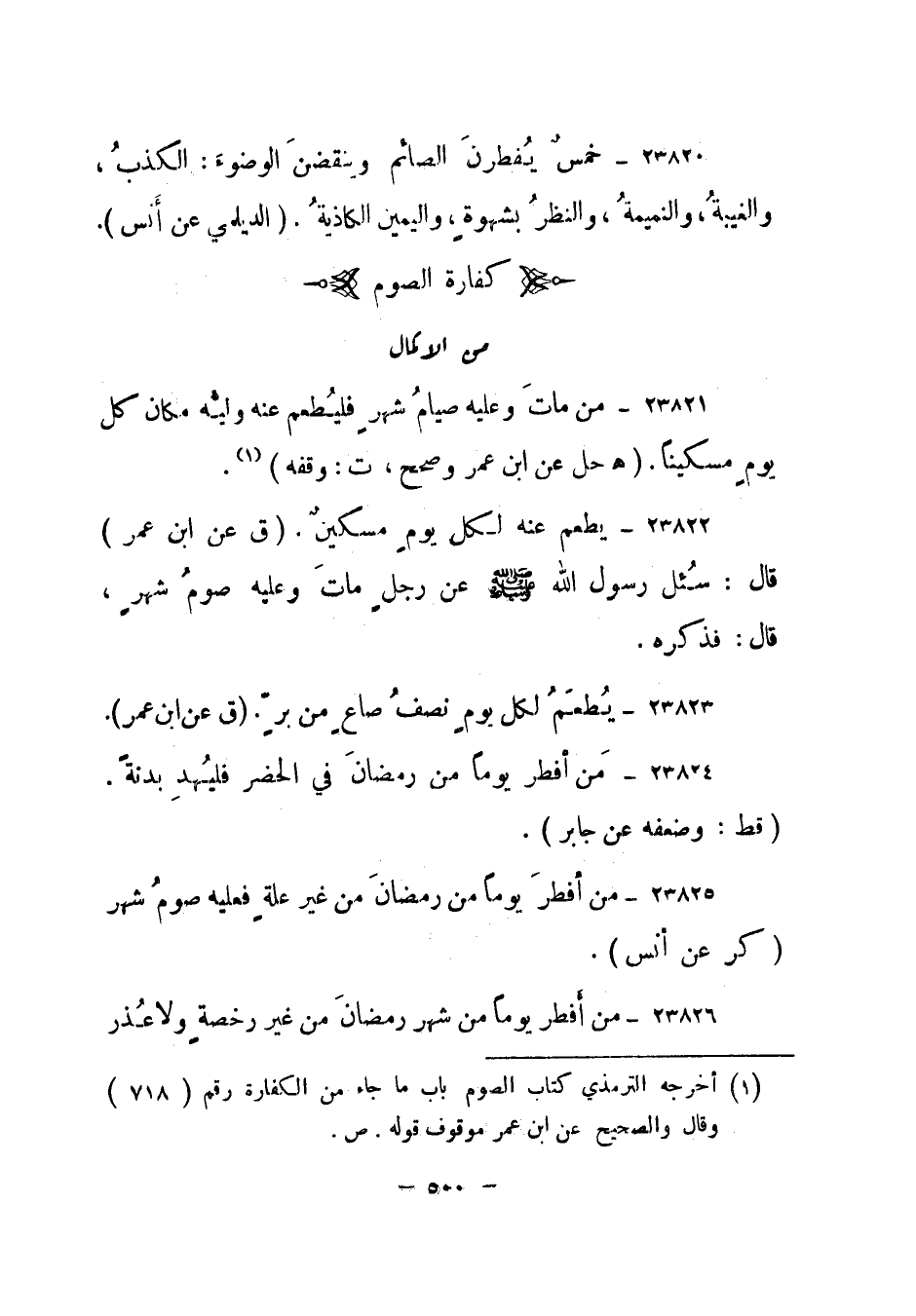 23826- "من أفطر يوما من شهر رمضان من غير رخصة ولا عذر