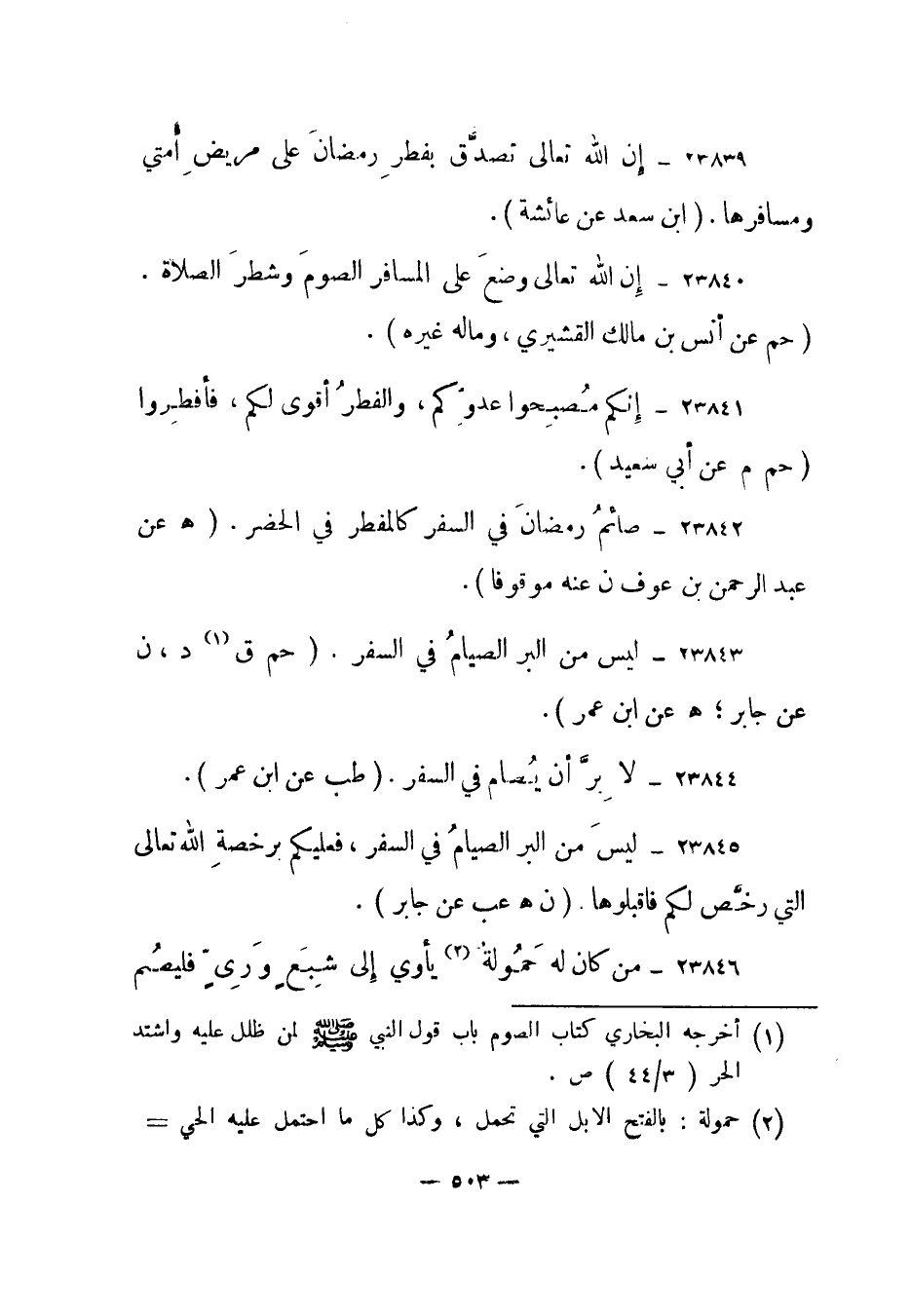 23843- "ليس من البر الصيام في السفر". (حم ق (1) د، ن عن جابر؛ هـ عن ابن عمر) .
