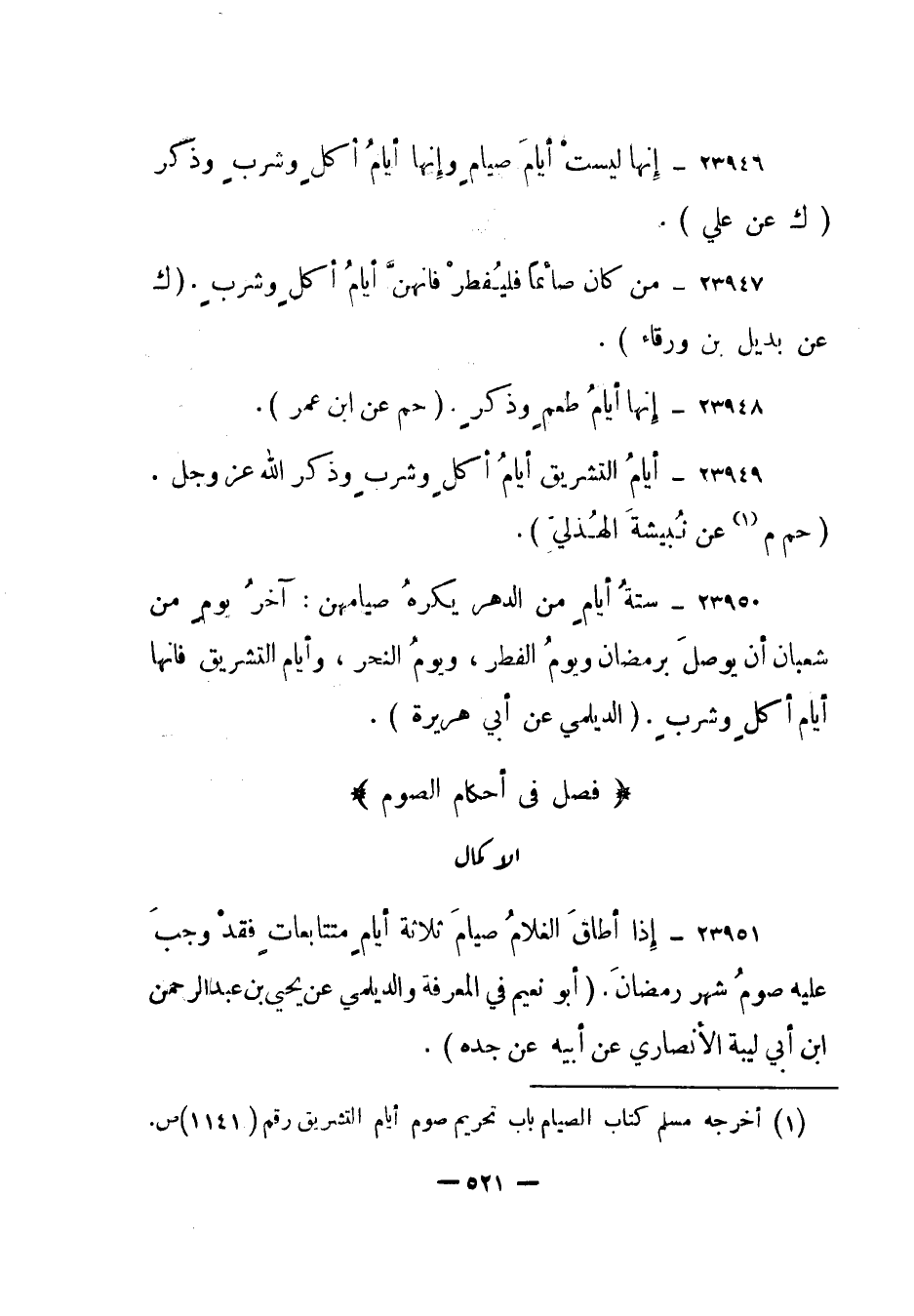 23946- "إنها ليست أيام صيام وإنها أيام أكل وشرب وذكر". (ك عن علي) .