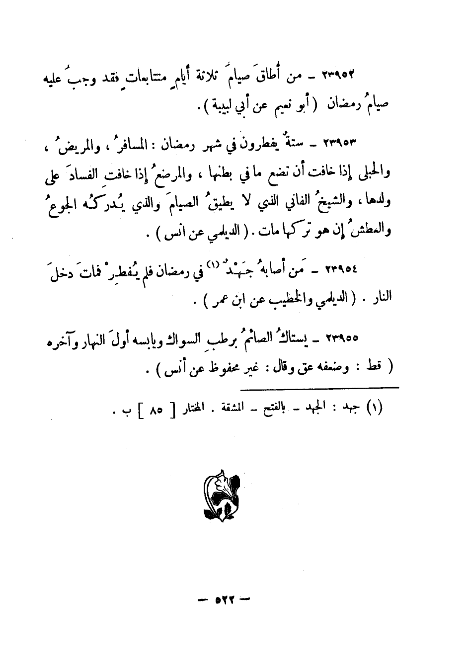 23952- "من أطاق صيام ثلاثة أيام متتابعات فقد وجب عليه صيام رمضان". (أبو نعيم عن أبي لبيبة) .