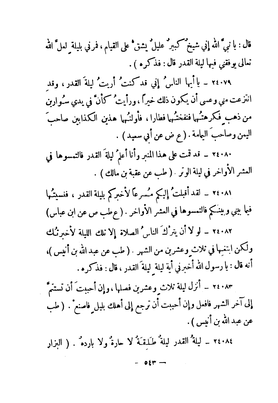 24084- "ليلة القدر ليلة طلقة لا حارة ولا باردة". "البزار