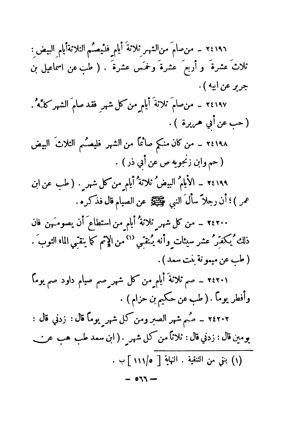 24197- "من صام ثلاثة أيام من كل شهر فقد صام الشهر كله". "حب عن أبي هريرة".