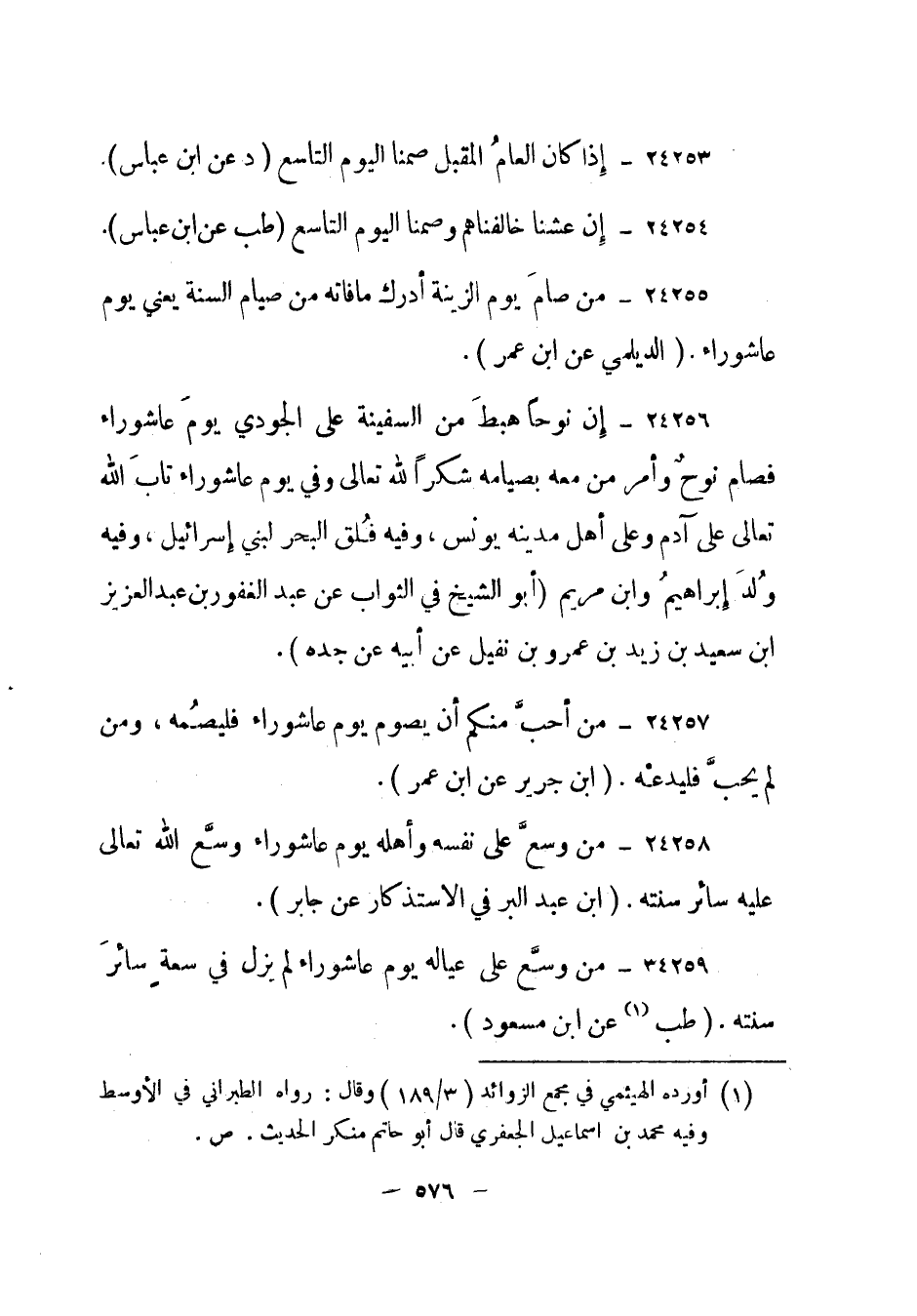 24254- "إن عشنا خالفناهم وصمنا اليوم التاسع". "طب عن ابن عباس".