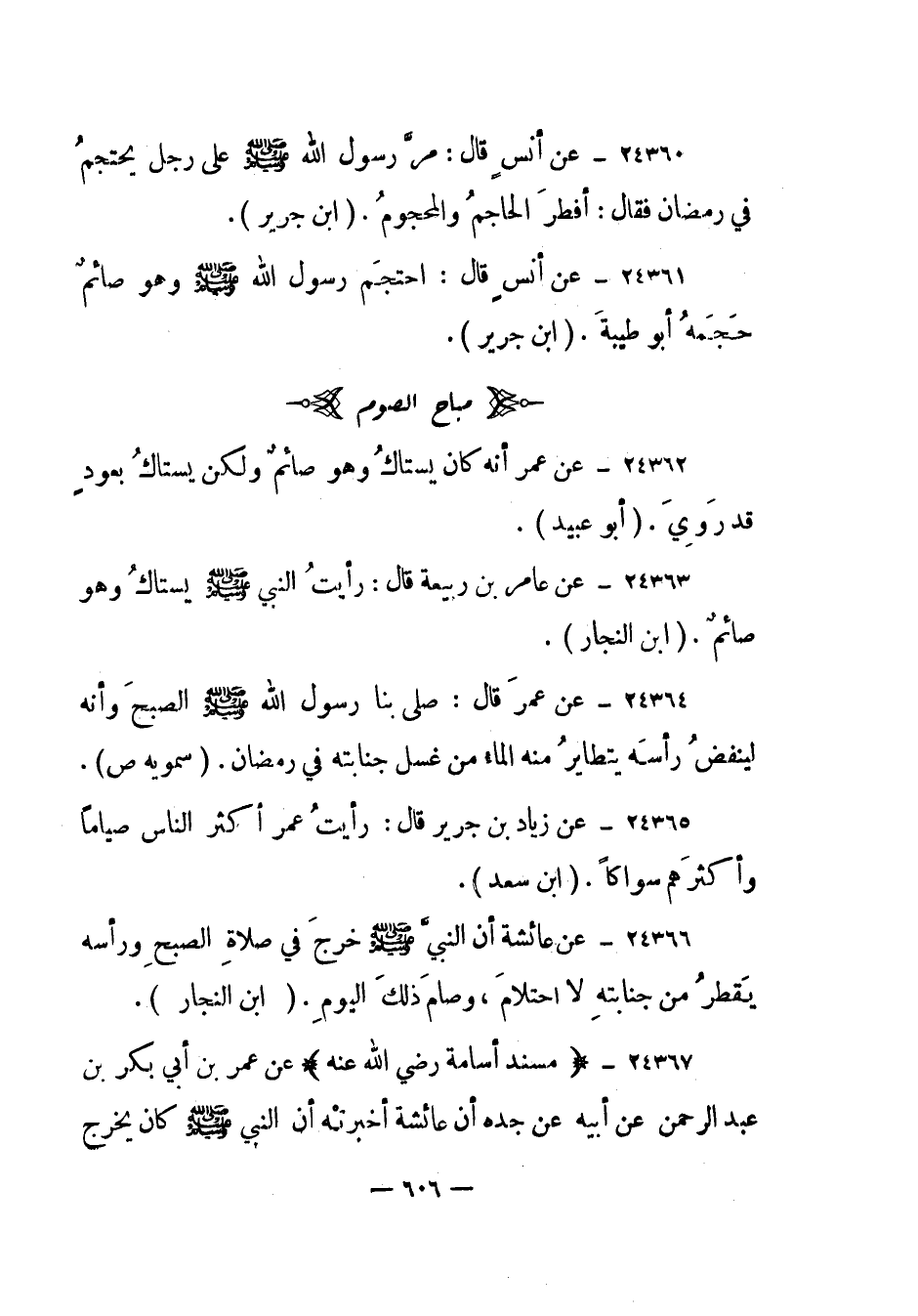 24360- عن أنس قال: "مر رسول الله صلى الله عليه وسلم على رجل يحتجم في رمضان فقال: أفطر الحاجم والمحجوم". "ابن جرير".