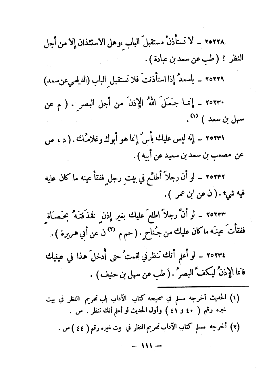 25230- "إنما جعل الله الإذن من أجل البصر". "م عن سهل بن سعد" 1.