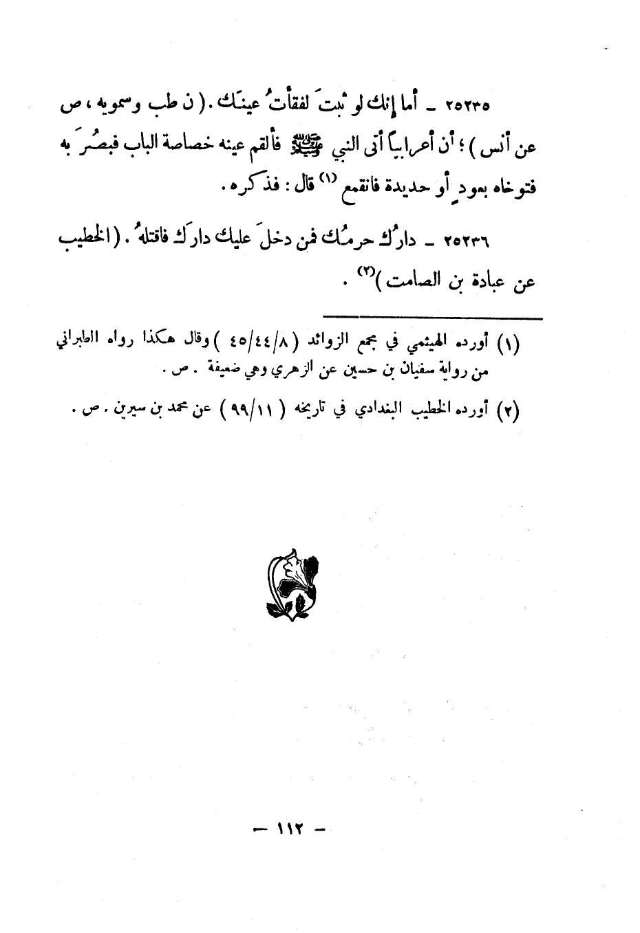 25236 -"دارك حرمك فمن دخل عليك دارك فاقتله". "الخطيب عن عبادة بن الصامت" 2
