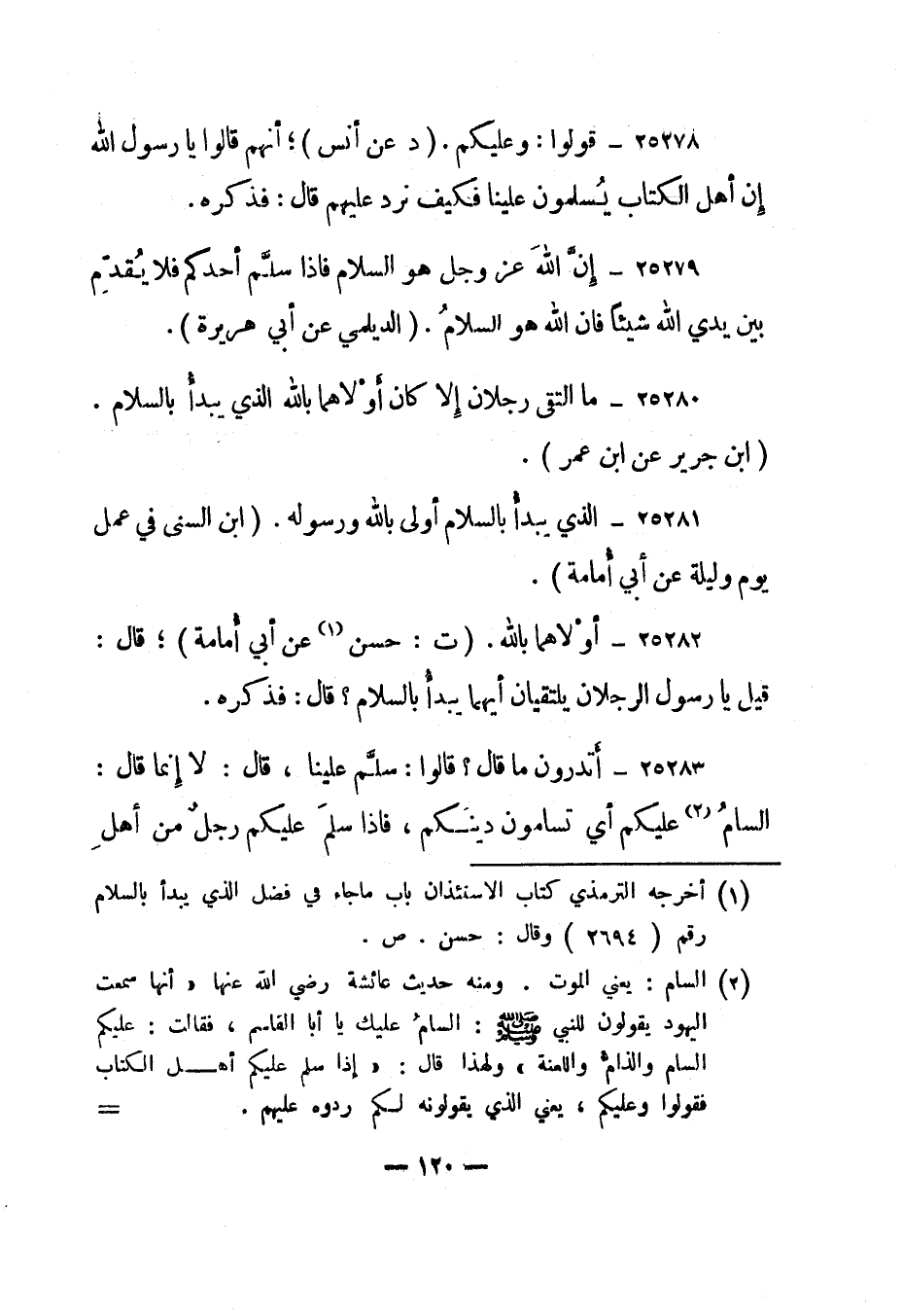 25281- "الذي يبدأ بالسلام أولى بالله ورسوله". "ابن السنى في عمل يوم وليلة عن أبي أمامة".