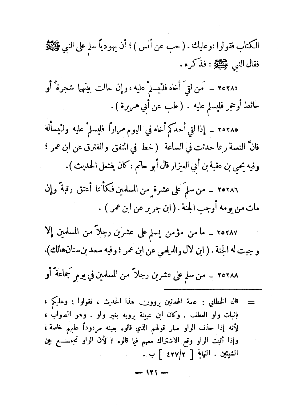 25288- "من سلم على عشرين رجلا من المسلمين في يوم جماعة أو