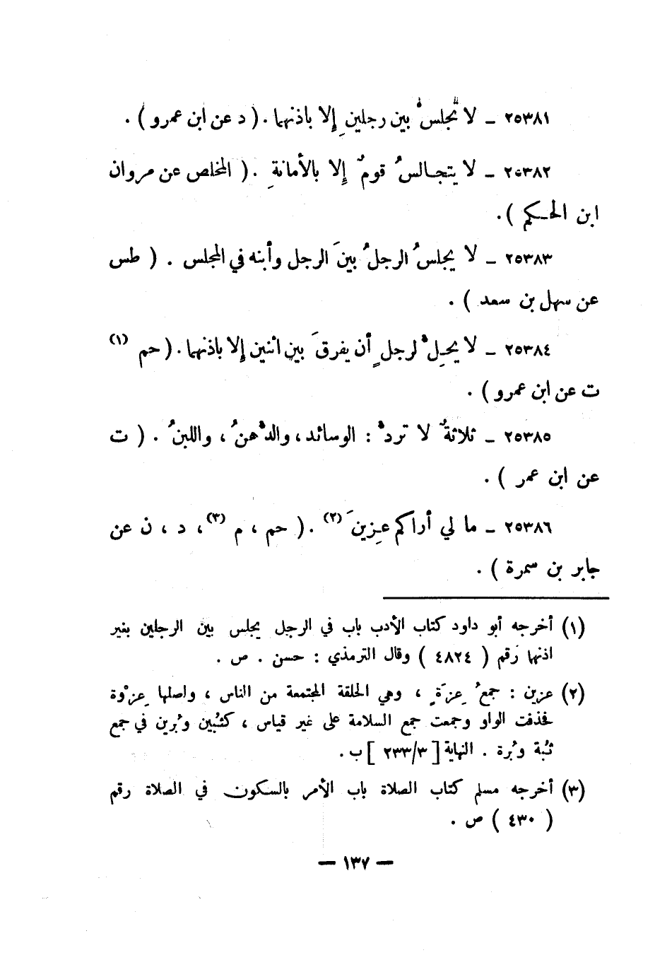 25381- "لا تجلس بين رجلين إلا بإذنهما". "د عن ابن عمرو".