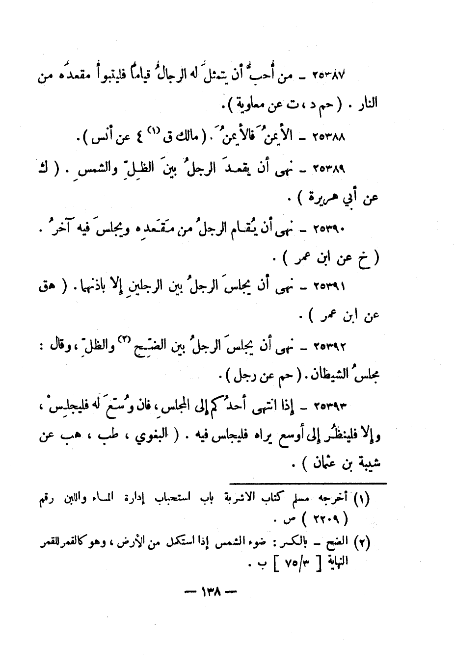 25392- "نهى أن يجلس الرجل بين الضح 2 والظل، وقال: مجلس الشيطان". "حم عن رجل".