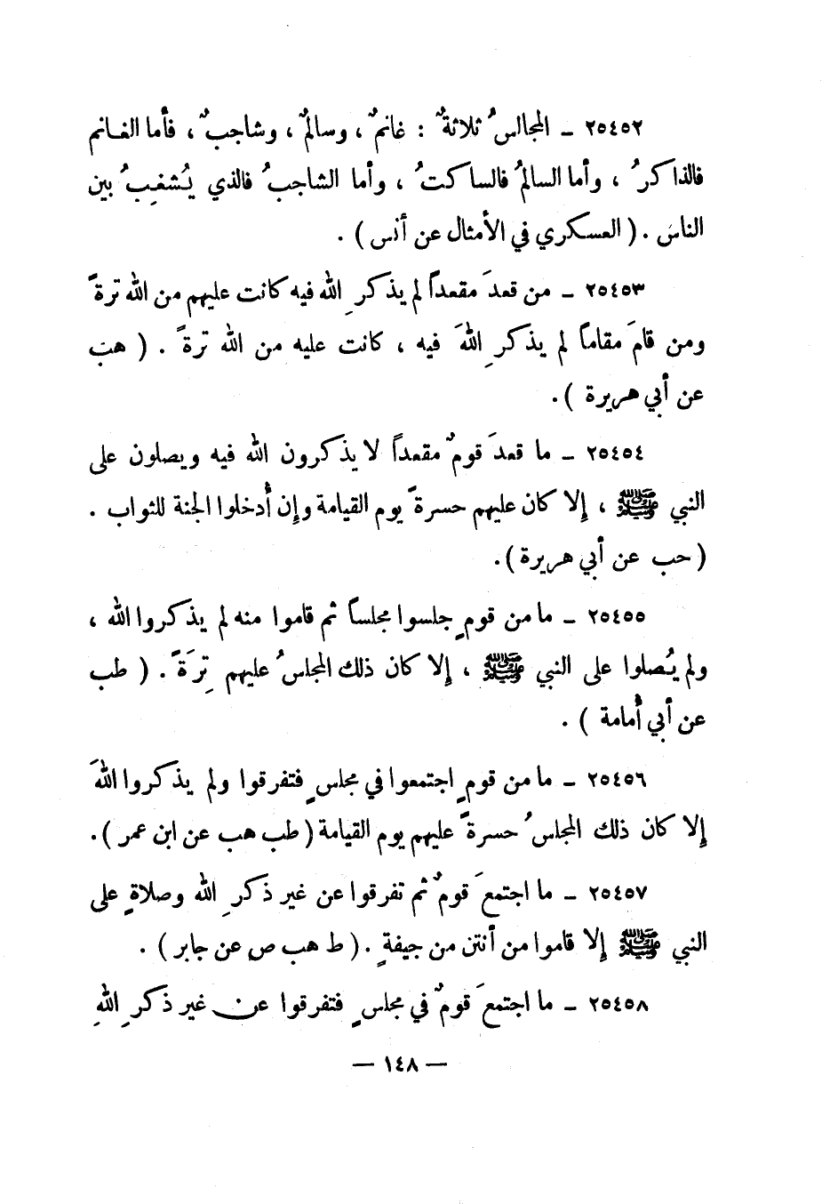 25458- "ما اجتمع قوم في مجلس فتفرقوا عن غير ذكر الله