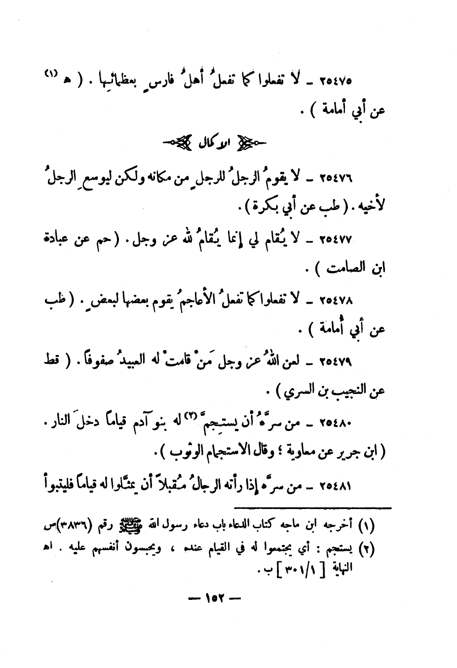 25478- "لا تفعلوا كما تفعل الأعاجم يقوم بعضها لبعض". "طب عن أبي أمامة".