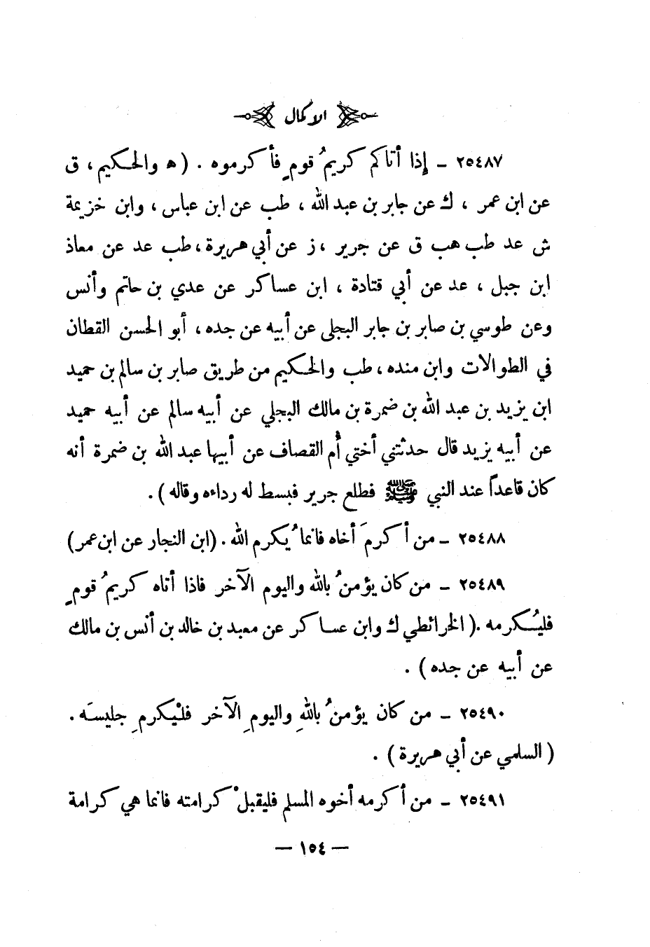 25490- "من كان يؤمن بالله واليوم الآخر فليكرم جليسه". "السلمي عن أبي هريرة".