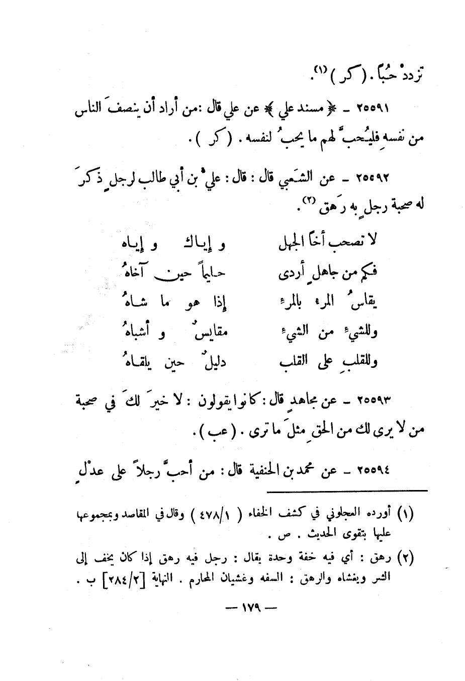 25592- عن الشعبي قال: قال: علي بن أبي طالب لرجل ذكر له صحبة رجل به رهق 2.