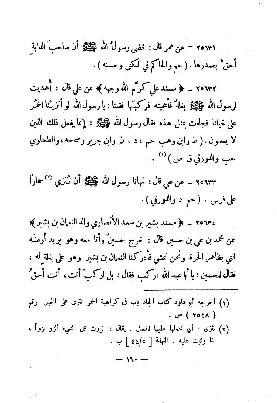 1 أخرجه أبو داود كتاب الجاد باب في كراهية الحمر تنزى على الخيل رقم "2548" ص.
