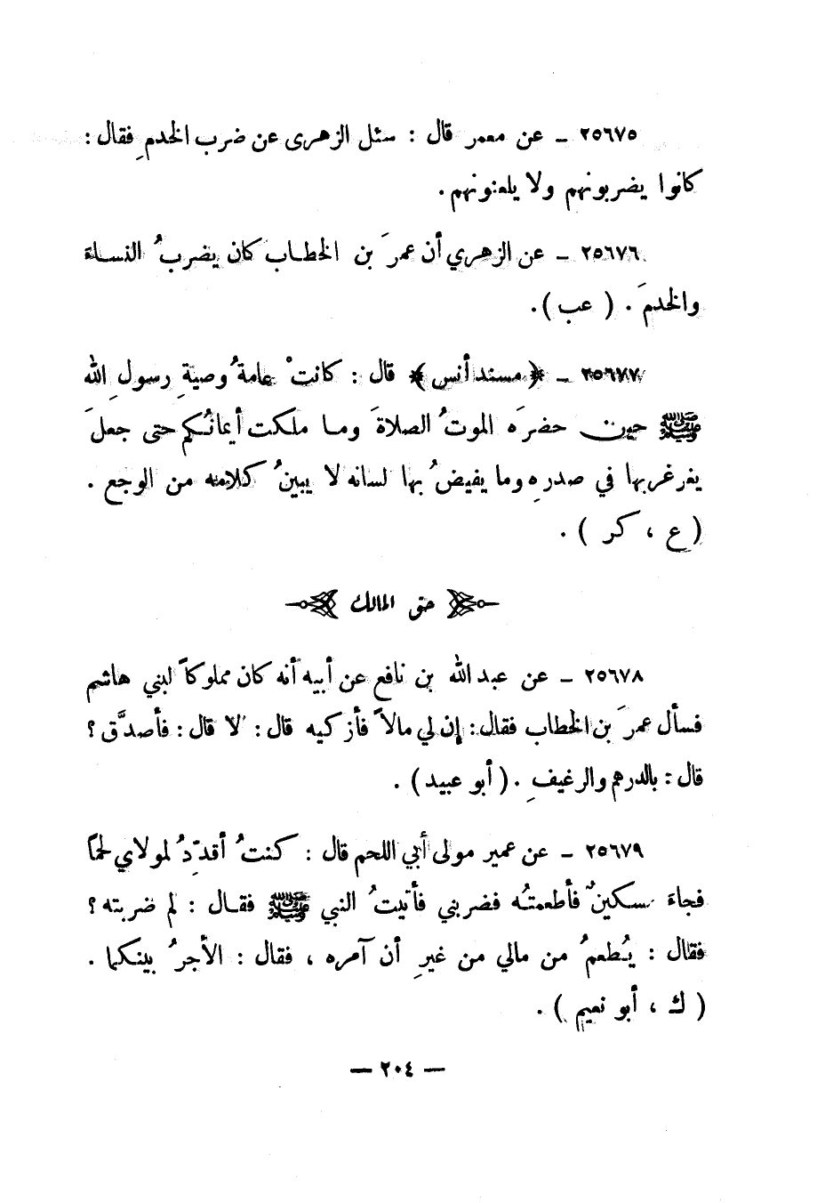 25676-عن الزهري "أن عمر بن الخطاب كان يضرب النساء والخدم". "عب".