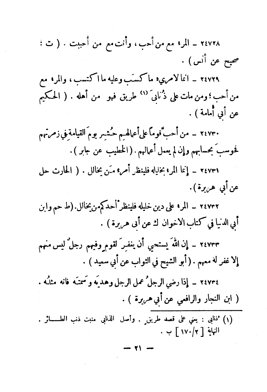 24731- "إنما المرء بخليله فلينظر أمرء من يخالل". "الحارث حل عن أبي هريرة".