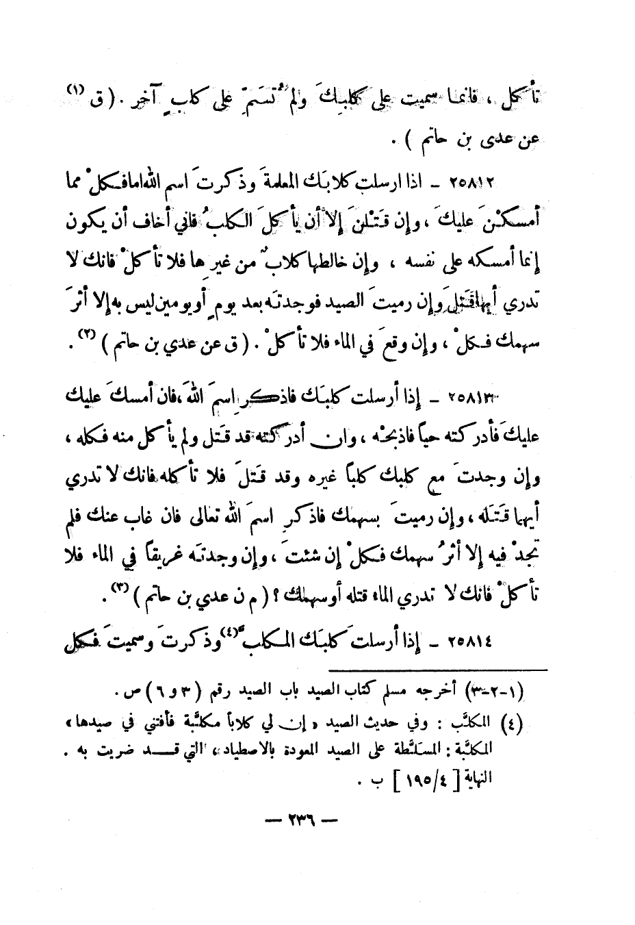 25814- "إذا أرسلت كلبك المكلب 4 وذكرت وسميت فكل"