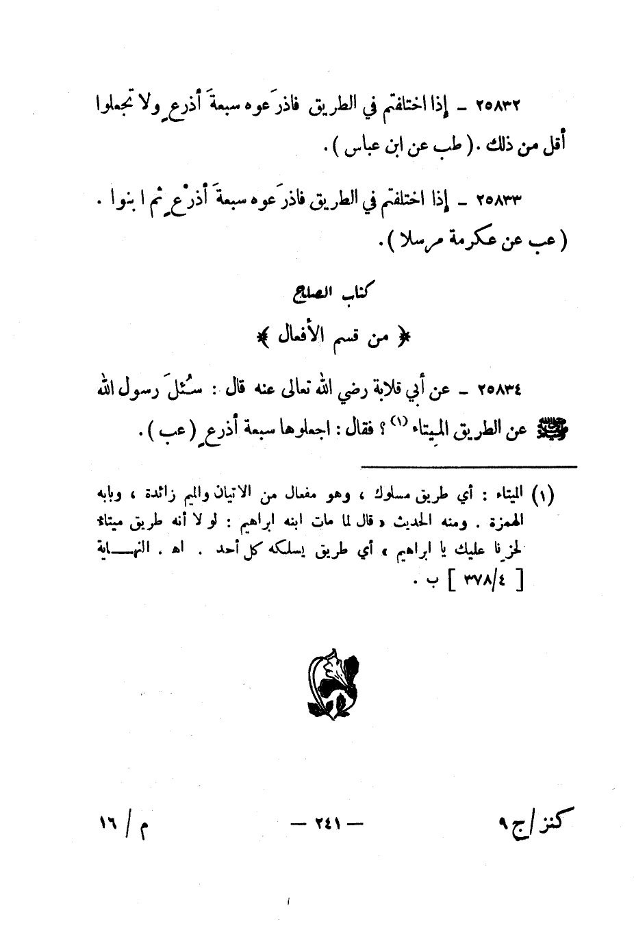 25833- "إذا اختلفتم في الطريق فاذرعوه سبعة أذرع ثم ابنوا". "عب عن عكرمة مرسلا".