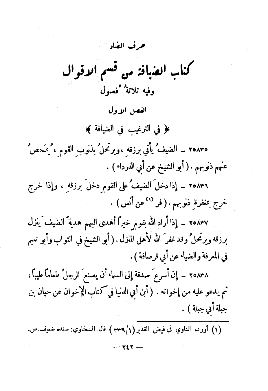 الفصل الأول "في الترغيب في الضيافة"