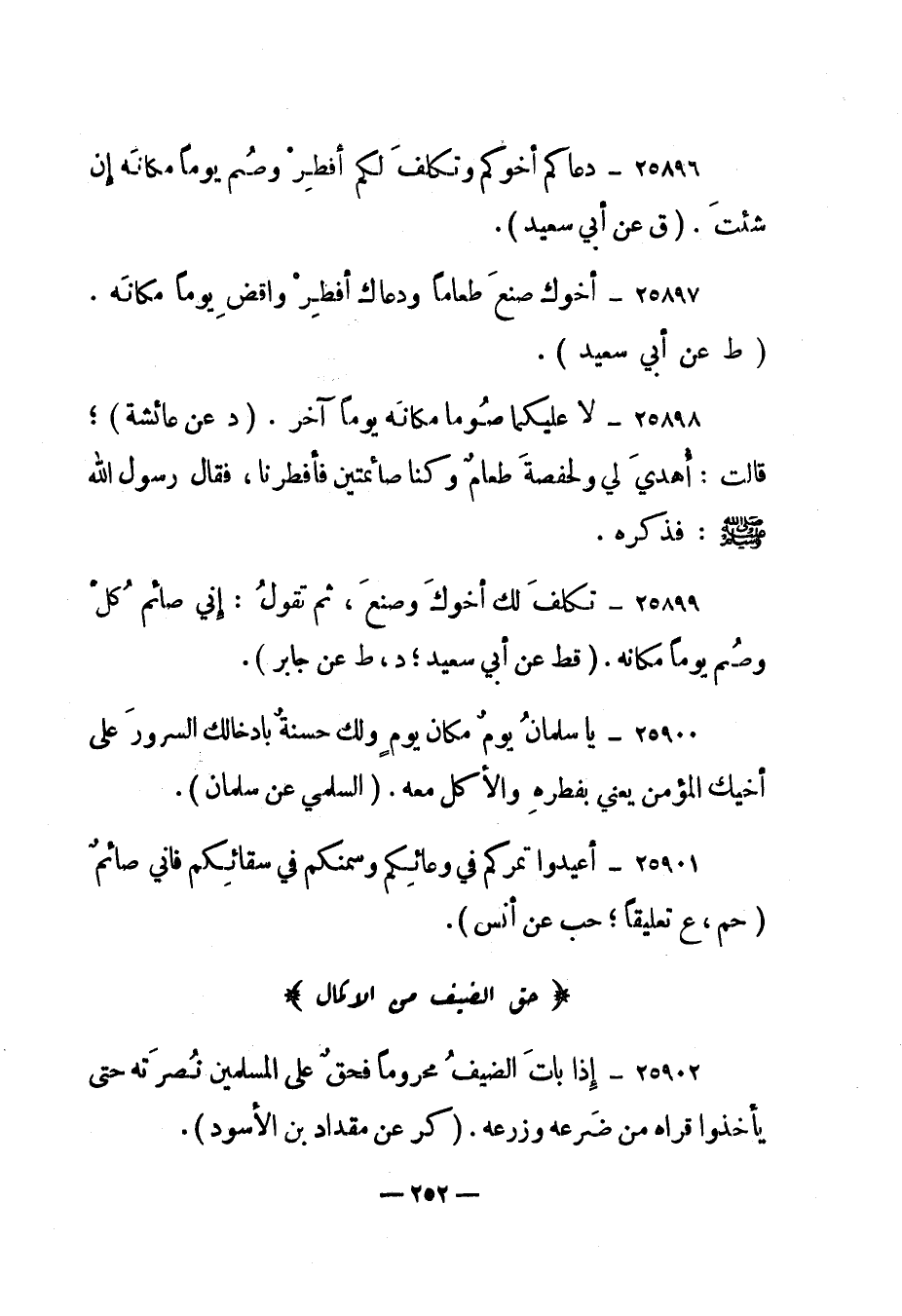 25900- "يا سلمان يوم مكان يوم ولك حسنة بإدخالك السرور على أخيك المؤمن يعني بفطره والأكل معه". "السلمي عن سلمان".