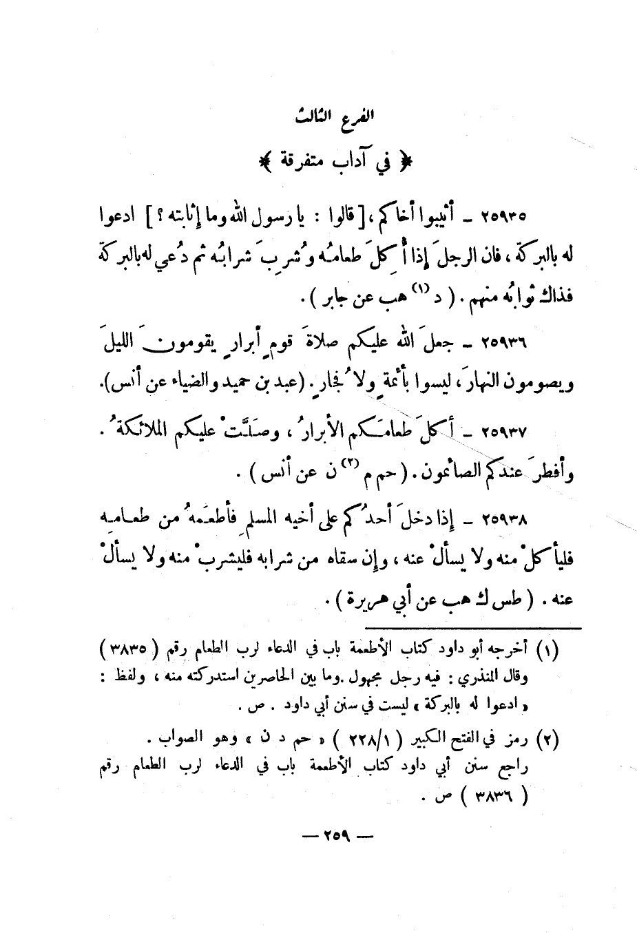 25937- "أكل طعامكم الأبرار، وصلت عليكم الملائكة. وأفطر عندكم الصائمون"."حم م 2 ن عن أنس".