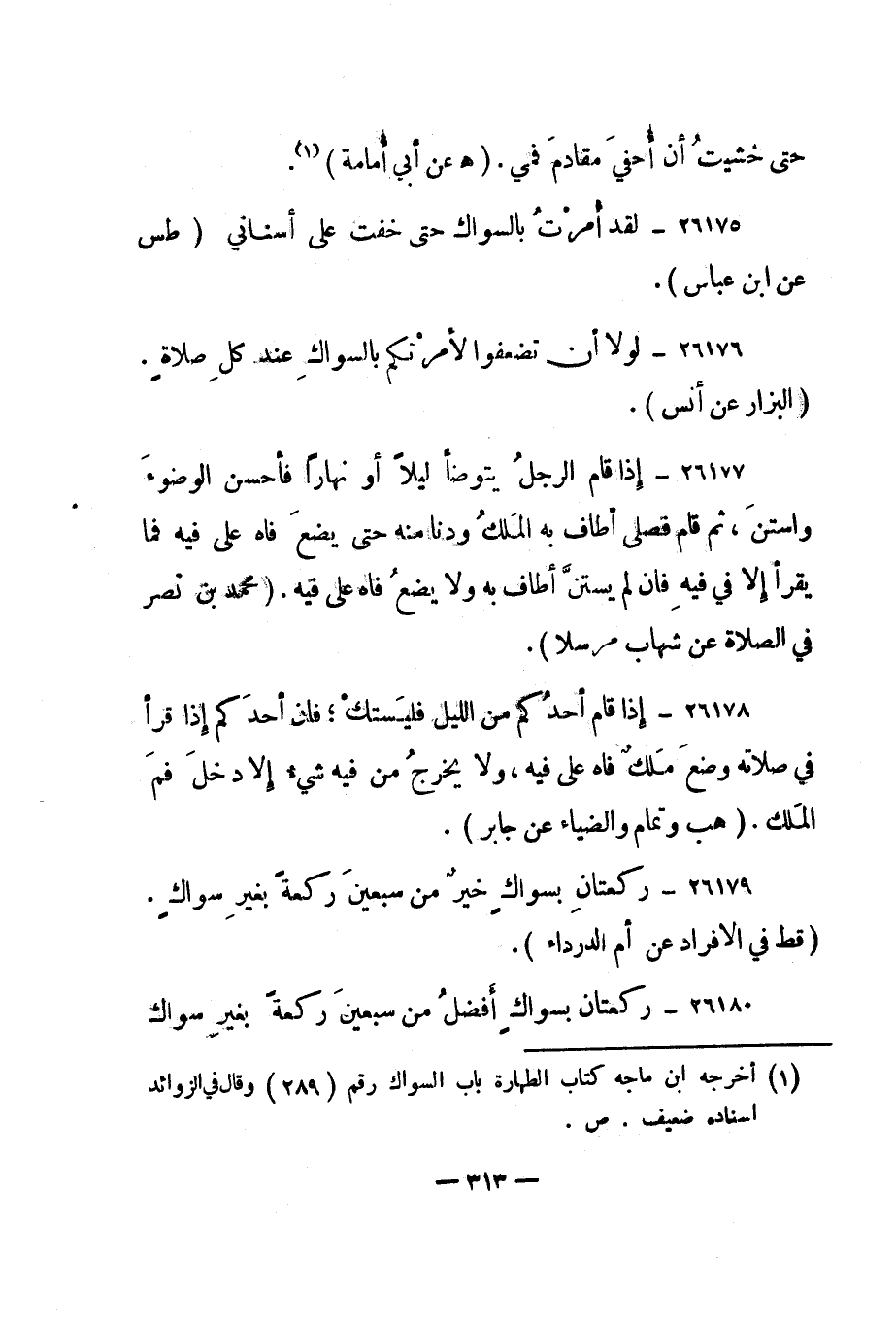 26175- "لقد أمرت بالسواك حتى خفت على أسناني". "طس عن ابن عباس".