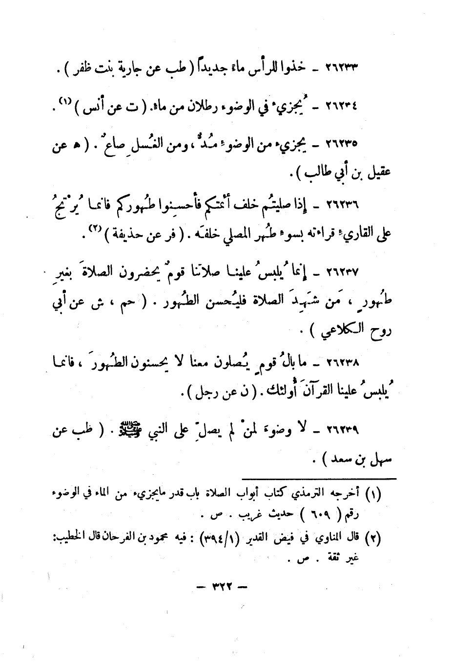 26235- "يجزي من الوضوء مد، ومن الغسل صاع". "هـ عن عقيل بن أبي طالب".