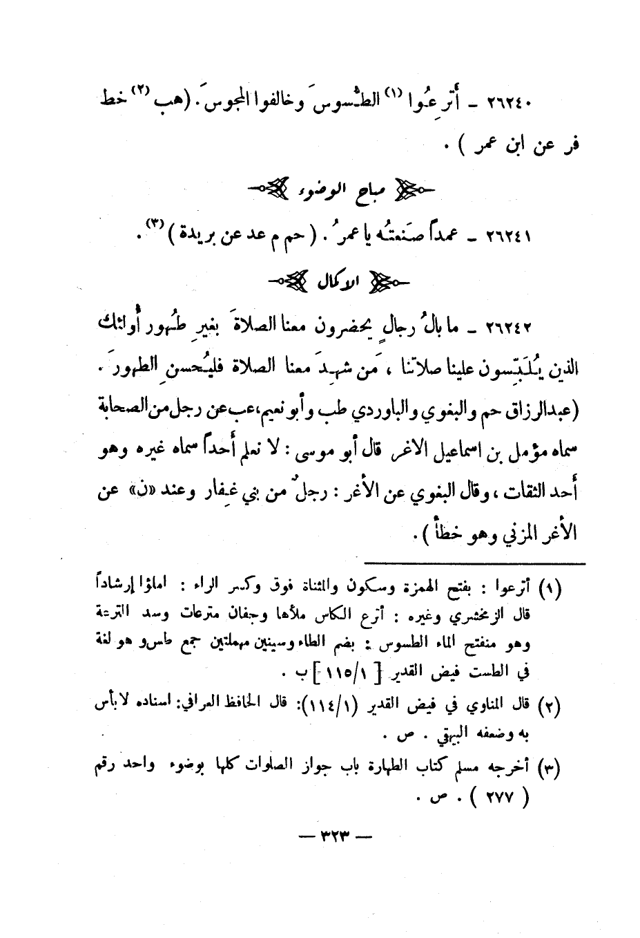 26240- "أترعوا 1 الطسوس وخالفوا المجوس". "هب 2 خط فر عن ابن عمر".