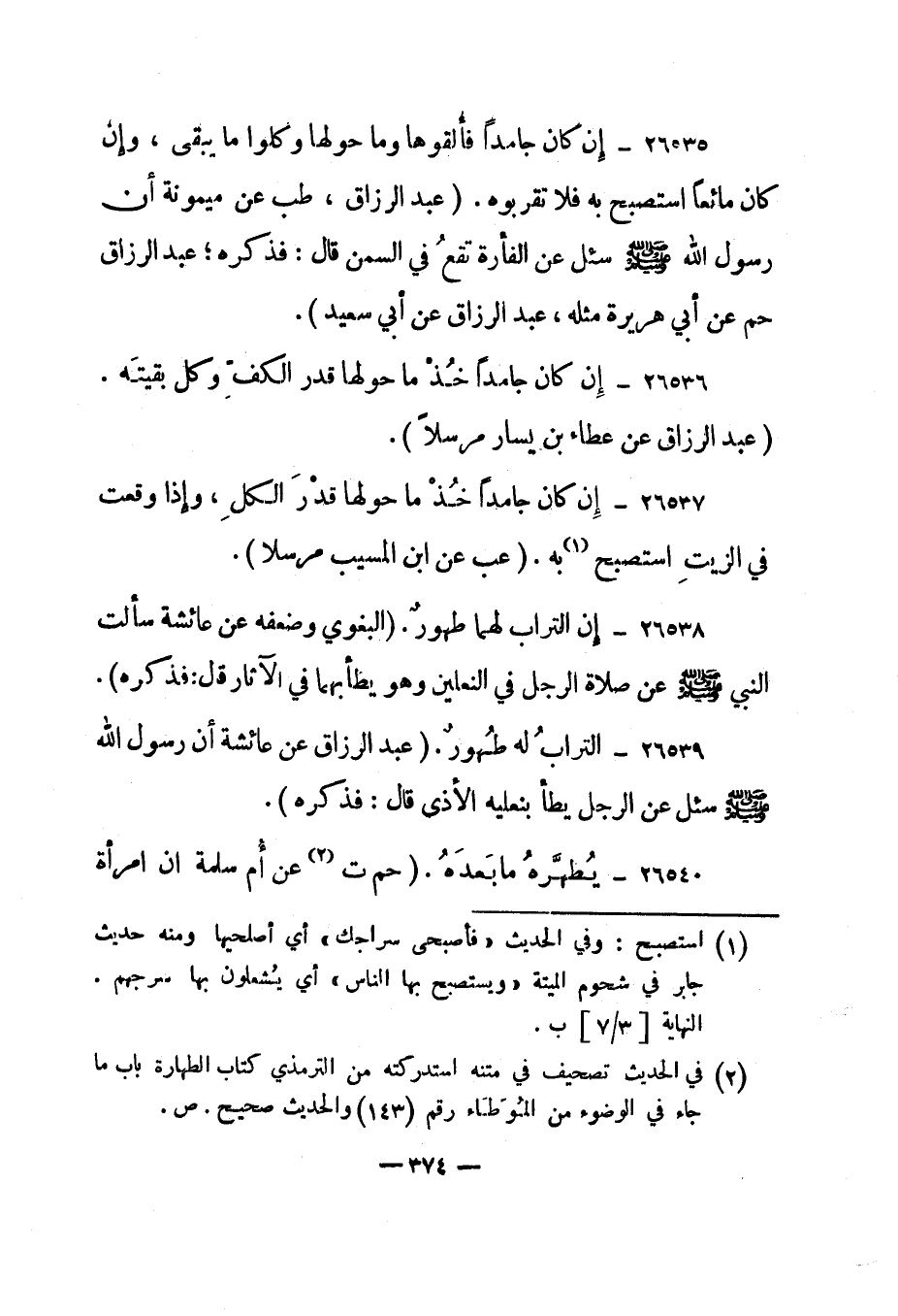 26537- "إن كان جامدا خذ ما حولها قدر الكل، وإذا وقعت في الزيت استصبح 1به". "عب عن ابن المسيب مرسلا".