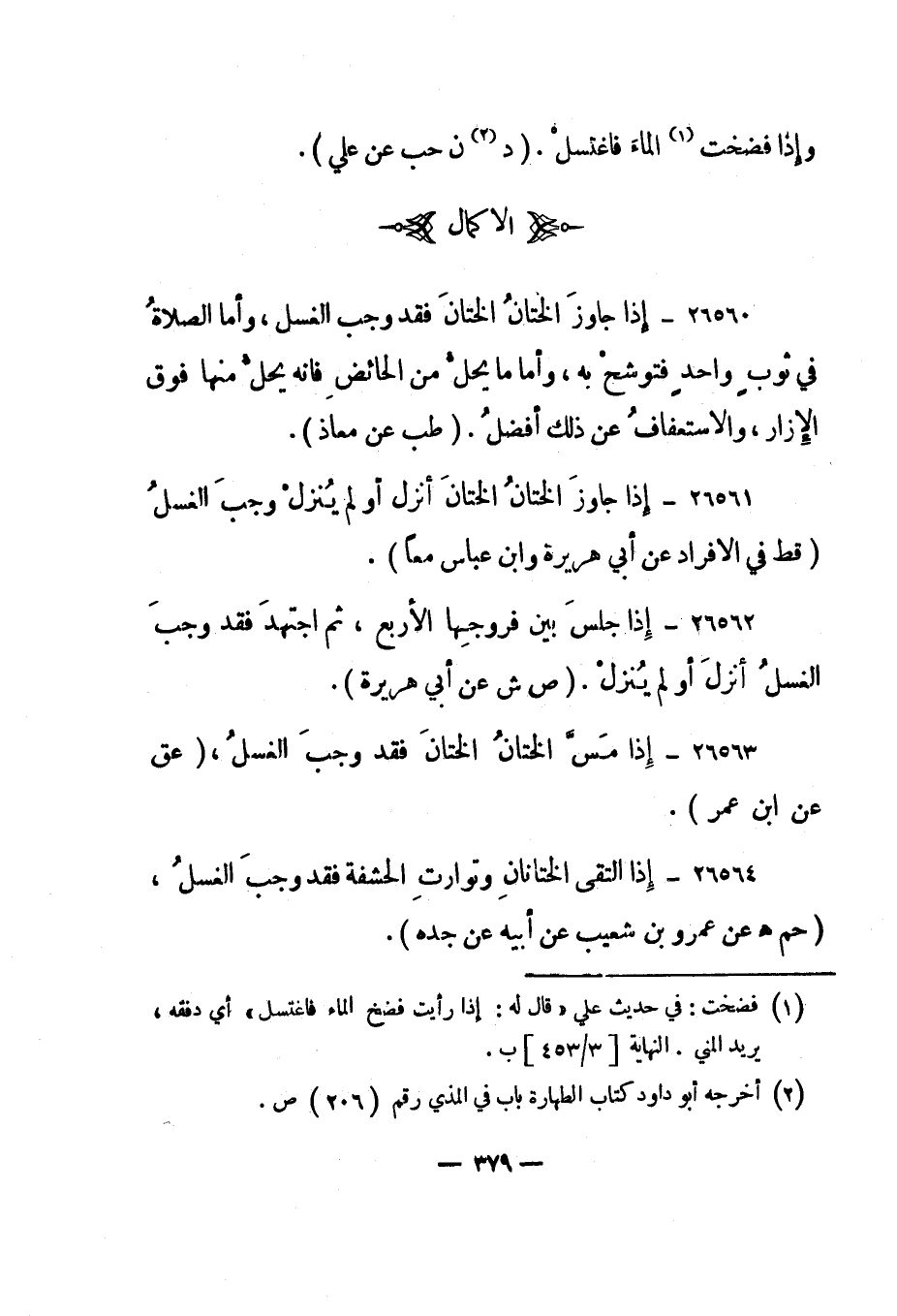 26563- "إذا مس الختان الختان فقد وجب الغسل." "عق عن ابن عمر".