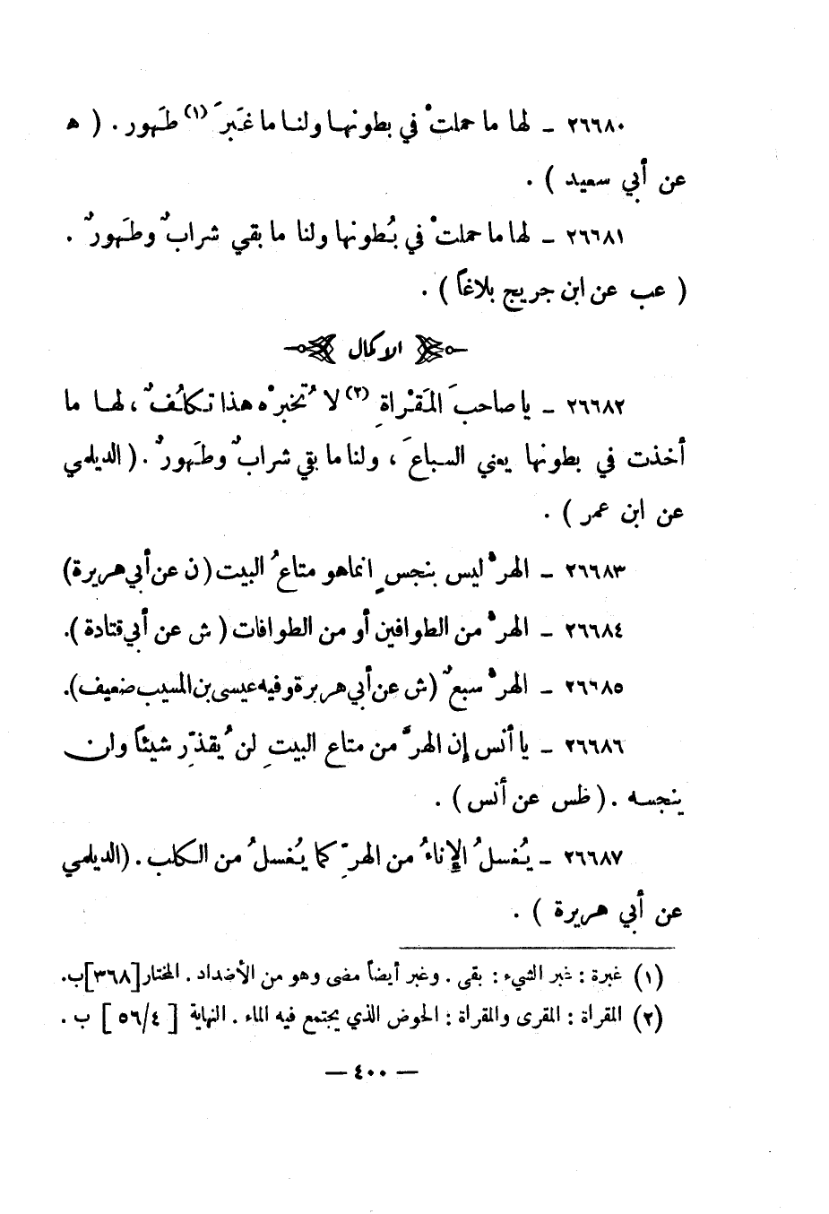 26684- "الهر من الطوافين أو من الطوافات". "ش عن أبي قتادة".