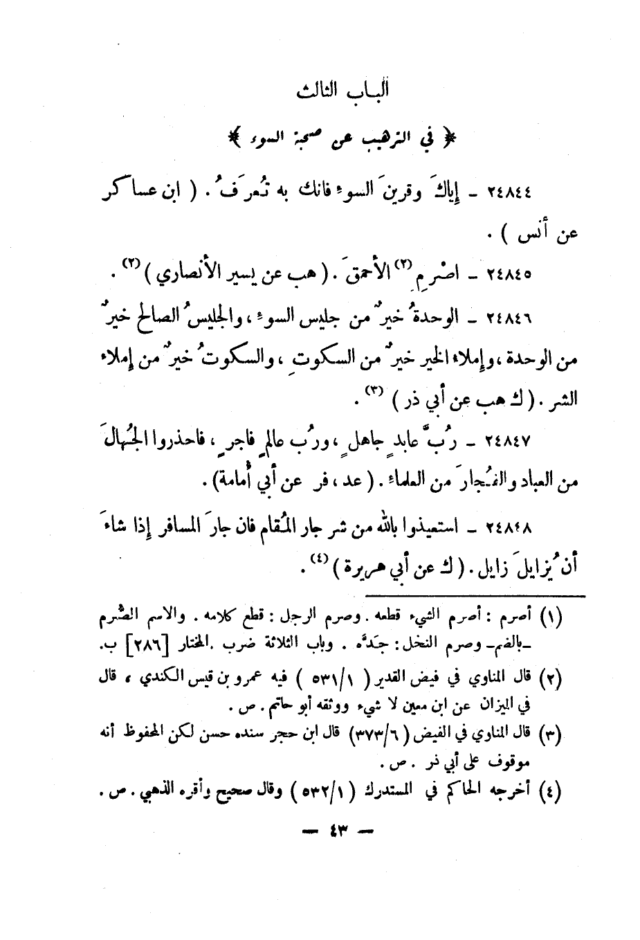 الباب الثالث "في الترهيب عن صحبة السوء"