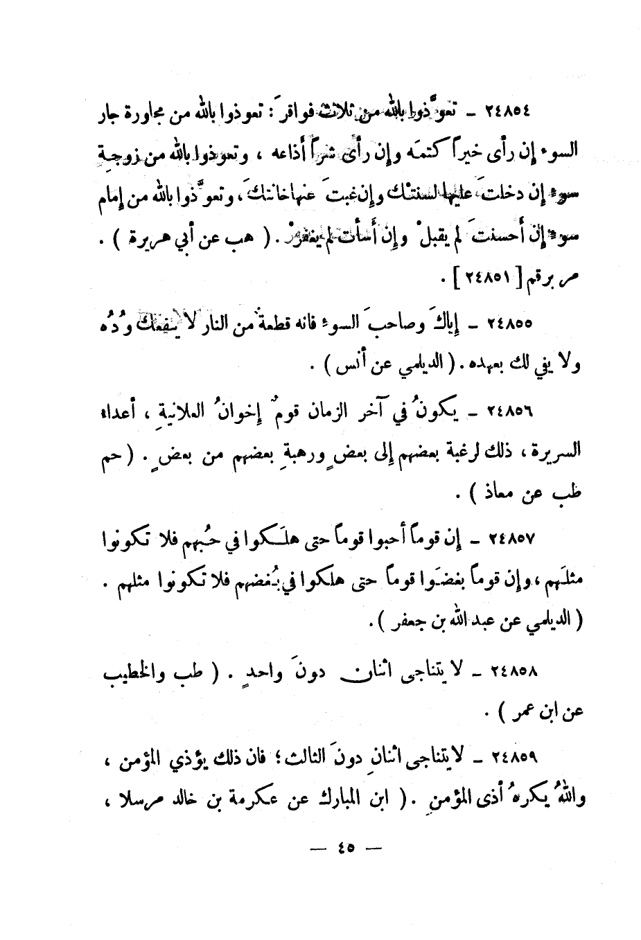 24858- "لا يتناجى اثنان دون واحد". "طب والخطيب عن ابن عمر".