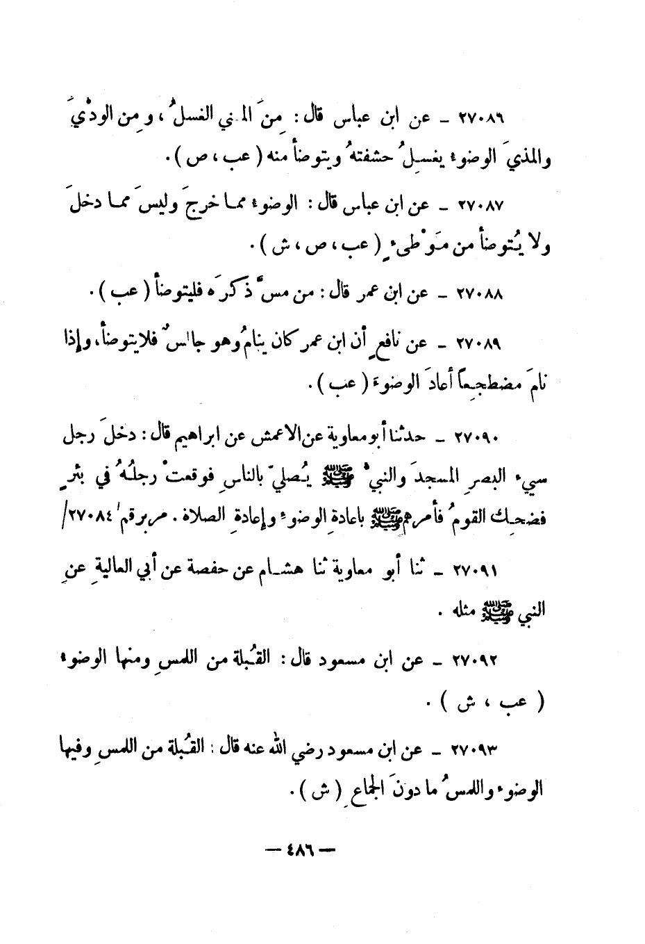 27088- عن ابن عمر قال: "من مس ذكره فليتوضأ". "عب".
