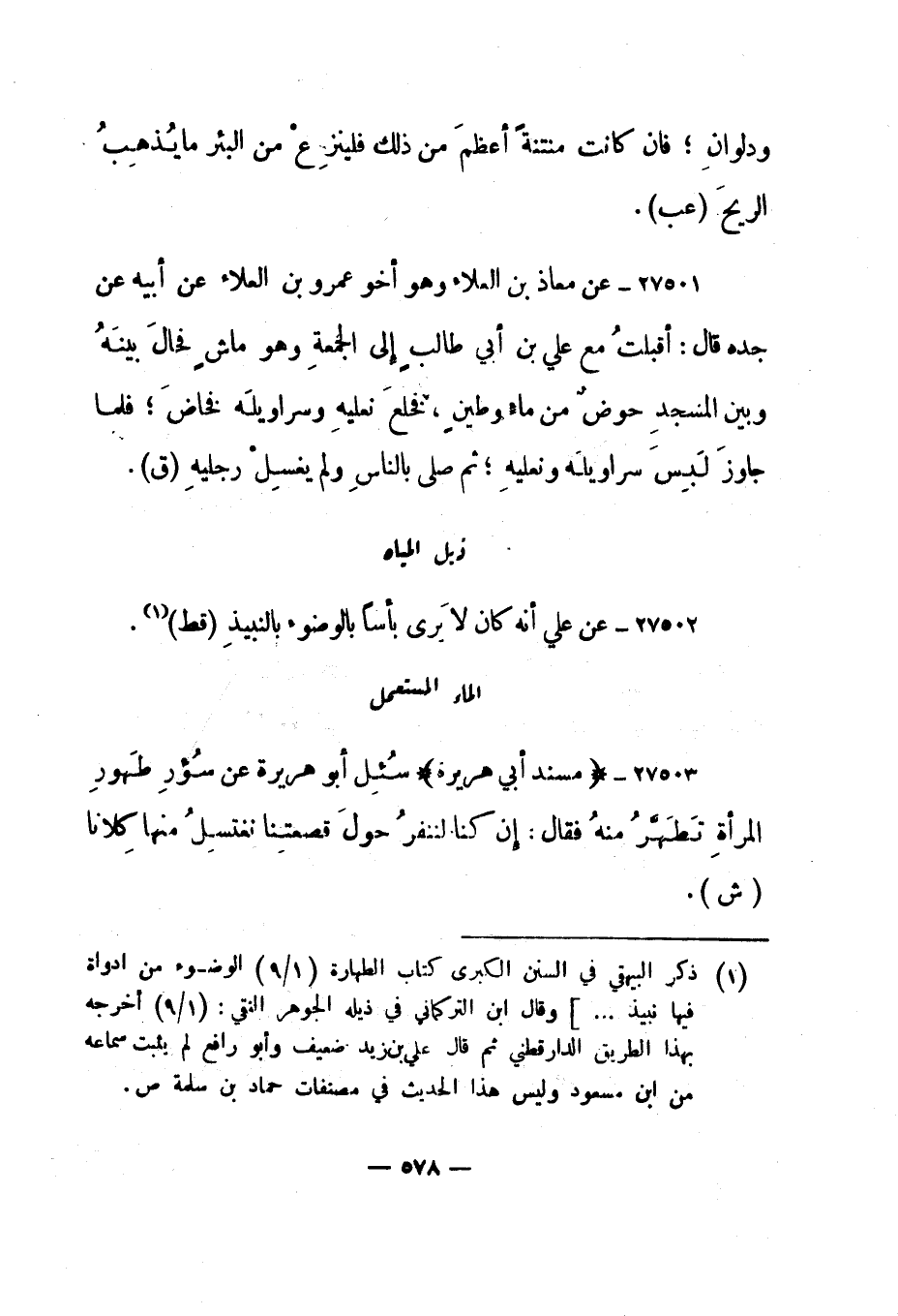 1 ذكر البيهقي في السنن الكبرى كتاب الطهارة "1/9" [الوضوء من ادواة فيها نبيذ ... ] وقال ابن التركماني في ذيله الجوهر النقي: "1/9" أخرجه بهذا الطريق الدارقطني ثم قال علي بن زيد ضعيف وأبو رافع لم يثبت سماعه من ابن مسعود وليس هذا الحديث في مصنفات حماد بن سلمة ص.