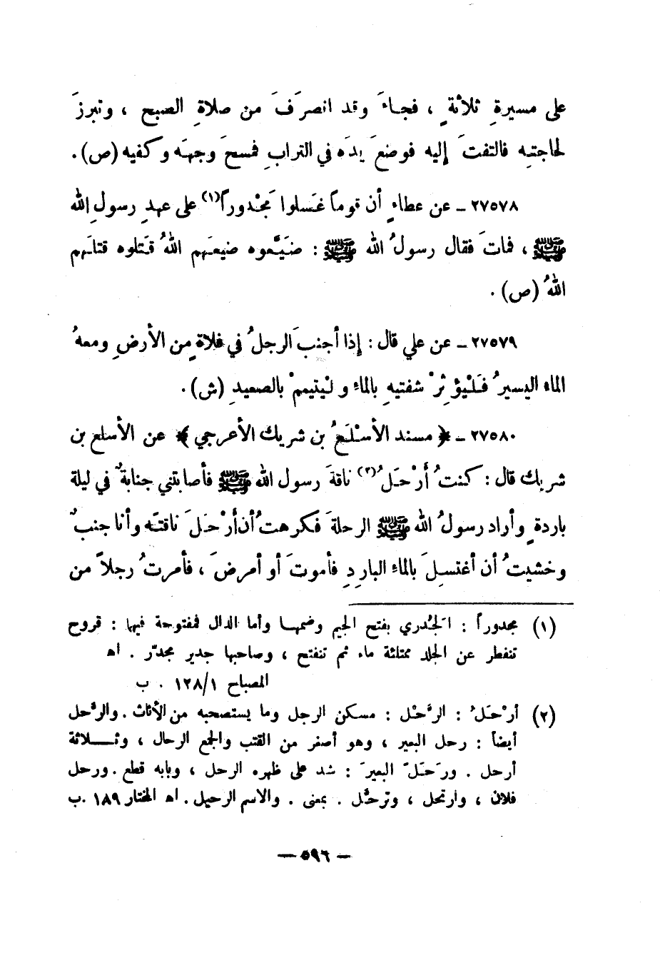 27580- "مسند الأسلع بن شريك الأعرجي" عن الأسلع بن شريك قال: "كنت أرحل 2 ناقة رسول الله صلى الله عليه وسلم فأصابتني جنابة في ليلة باردة وأراد رسول الله صلى الله عليه وسلم الرحلة فكرهت أن أرحل ناقته وأنا جنب وخشيت أن أغتسل بالماء البارد فأموت أو أمرض، فأمرت رجلا من