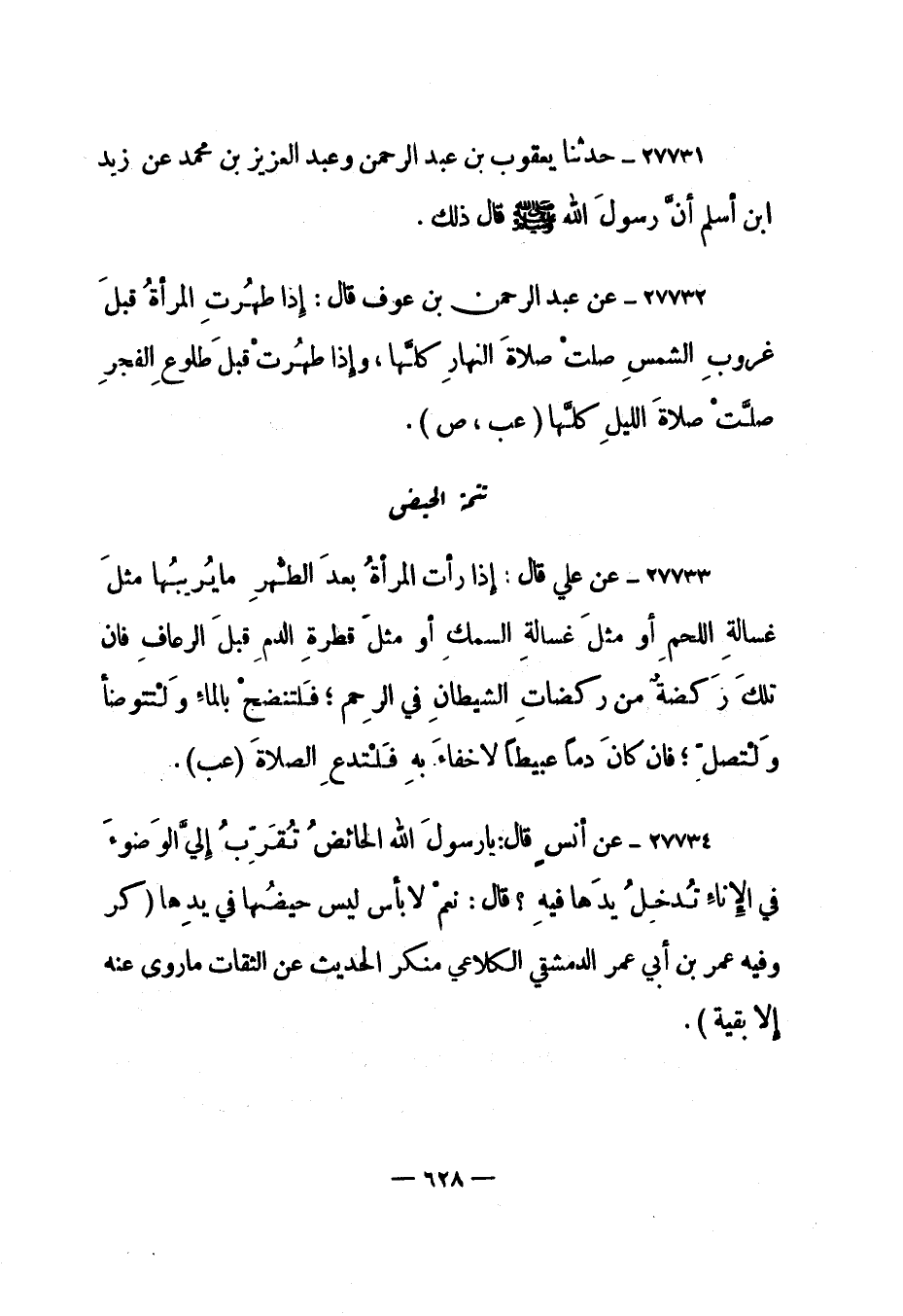 27732- عن عبد الرحمن بن عوف قال: "إذا طهرت المرأة قبل غروب الشمس صلت صلاة النهار كلها، وإذا طهرت قبل طلوع الفجر صلت صلاة الليل كلها". "عب، ص".