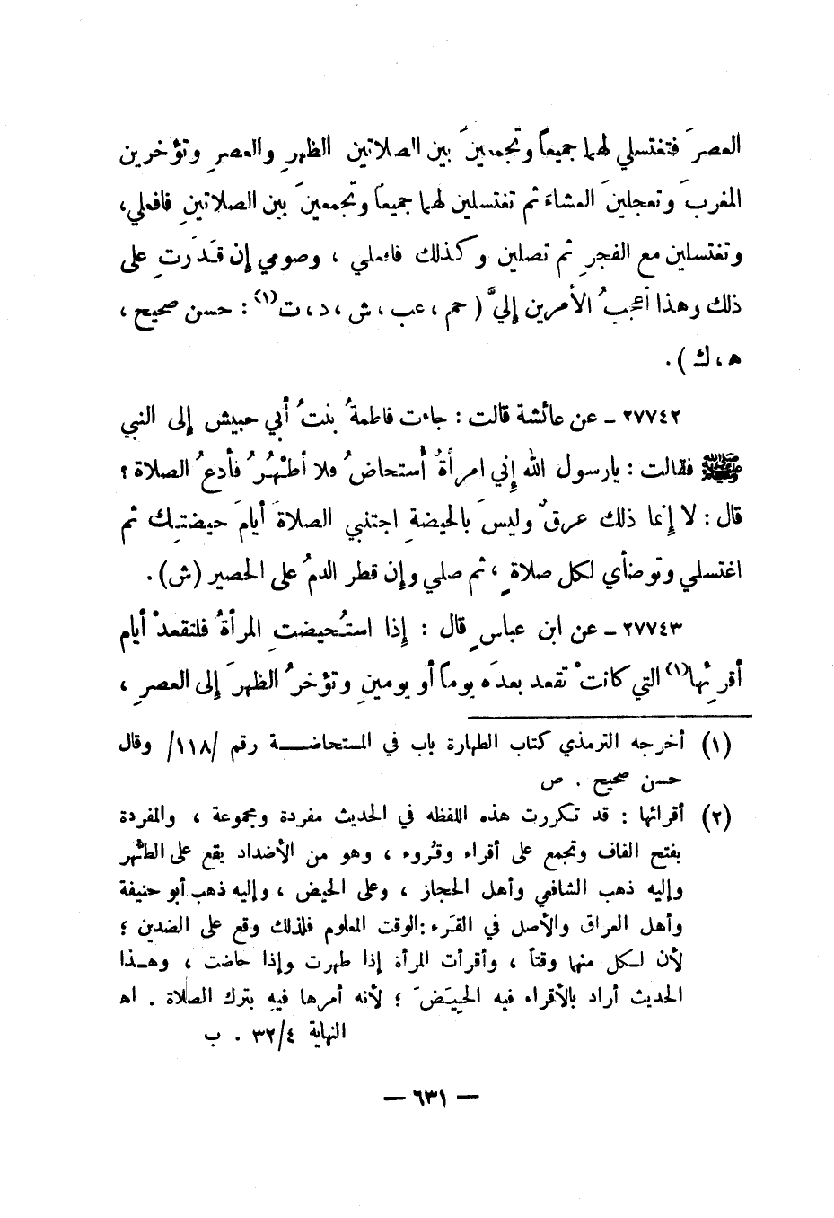1 أخرجه الترمذي كتاب الطهارة باب في المستحاضة رقم/118/ وقال حسن صحيح. ص.