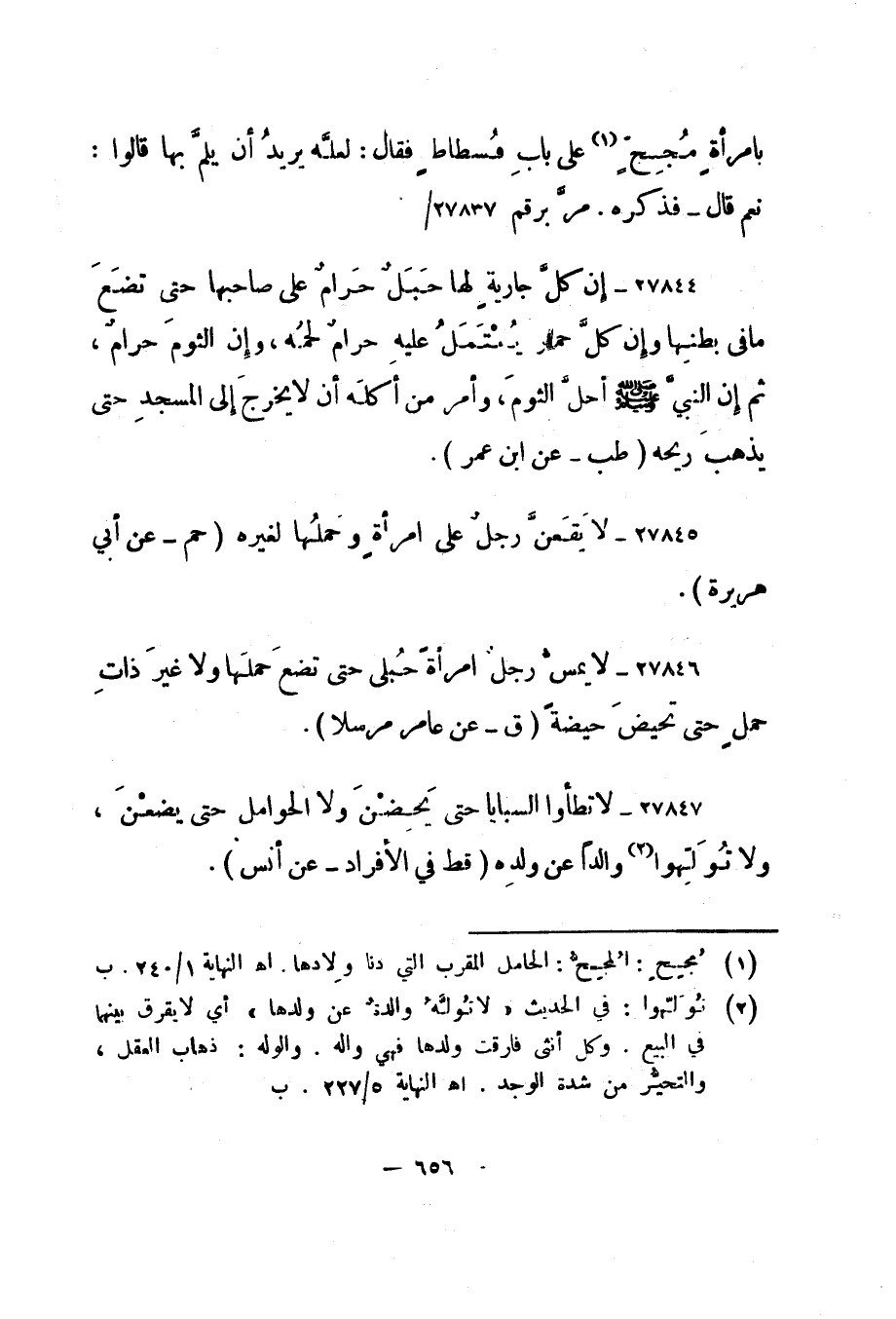 27847- "لا تطأوا السبايا حتى يحضن ولا الحوامل حتى يضعن، ولا تولهوا 2 والدا عن ولده". "قط في الأفراد - عن أنس".