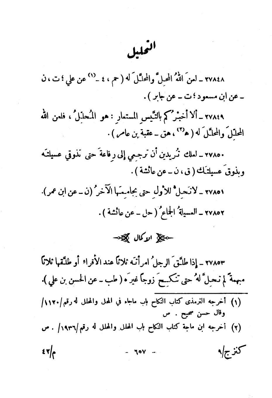 27849- "ألا أخبركم بالتيس المستعار: هو المحلل، فلعن الله المحلل والمحلل له". "هـ 2، هق - عقبة بن عامر".
