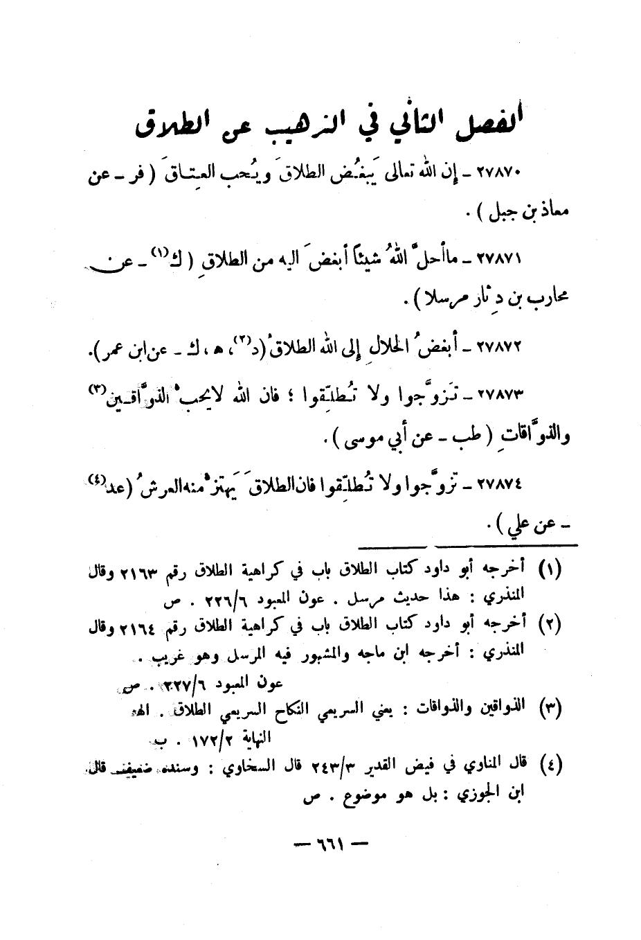 الفصل الثاني في الترهيب عن الطلاق