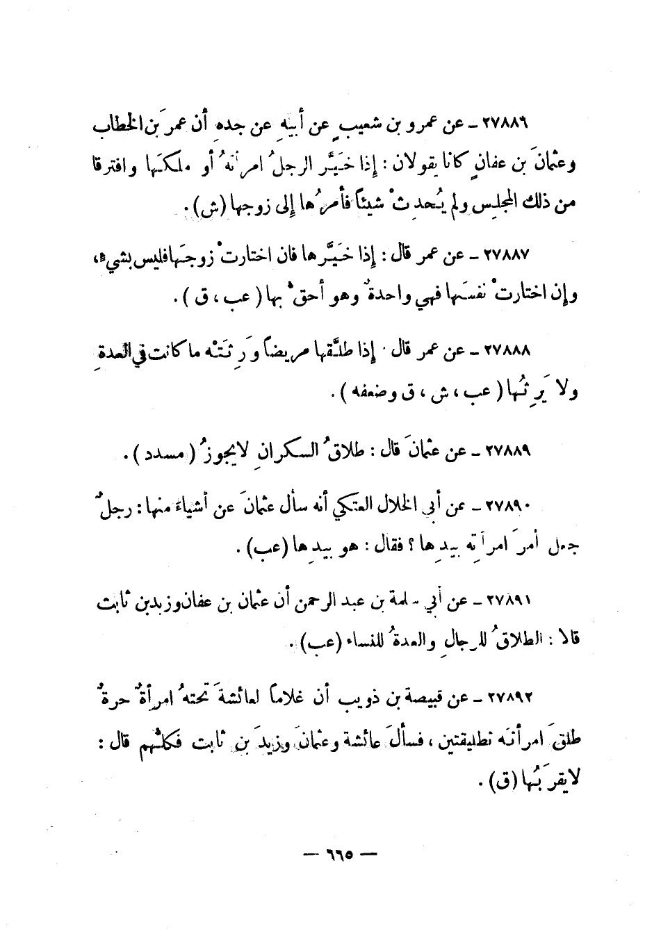 27891- عن أبي سلمة بن عبد الرحمن "أن عثمان بن عفان وزيد بن ثابت قالا: الطلاق للرجال والعدة للنساء". "عب".