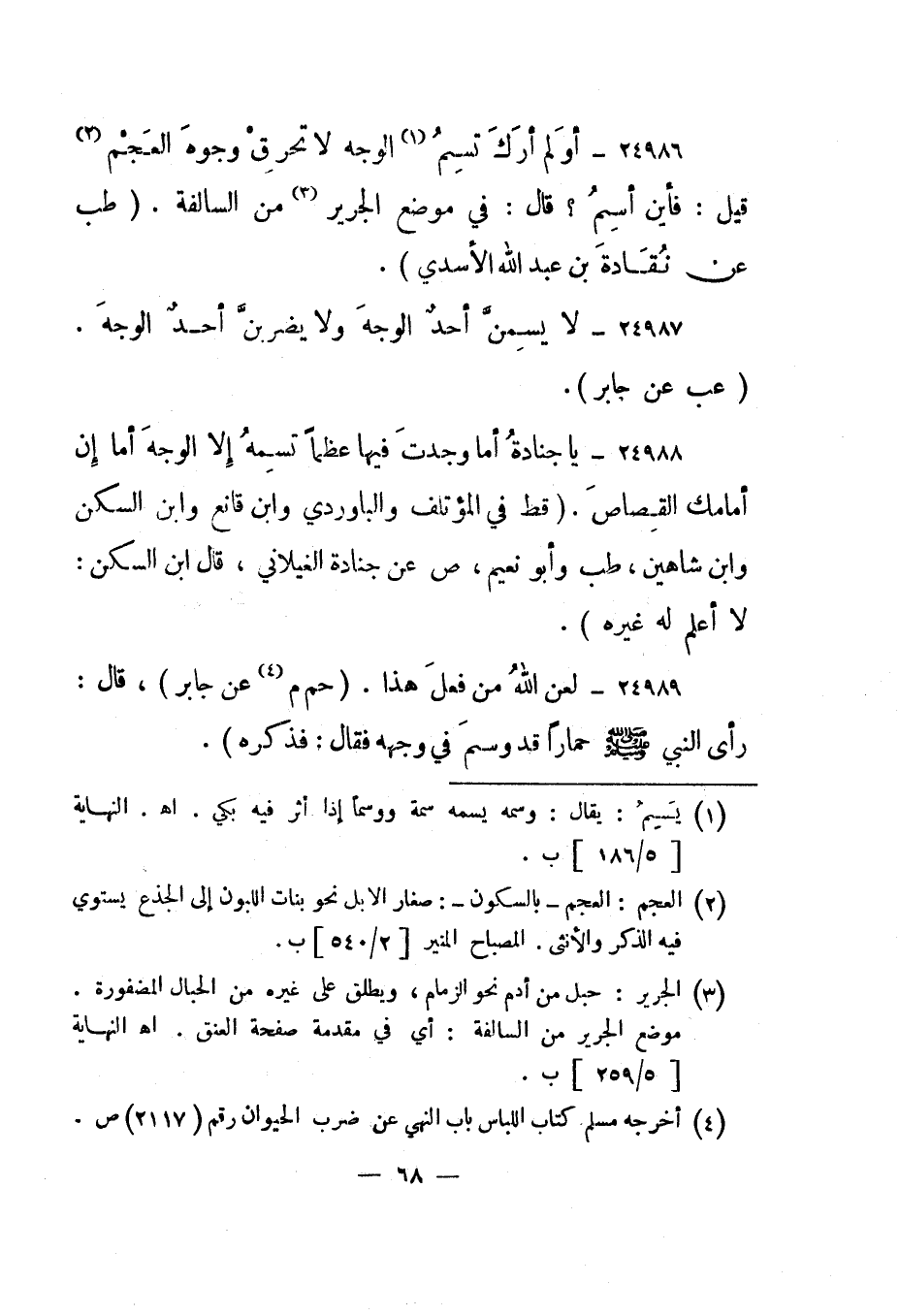 24987- "لا يسمن أحد الوجه ولا يضربن أحد الوجه". "عب عن جابر".