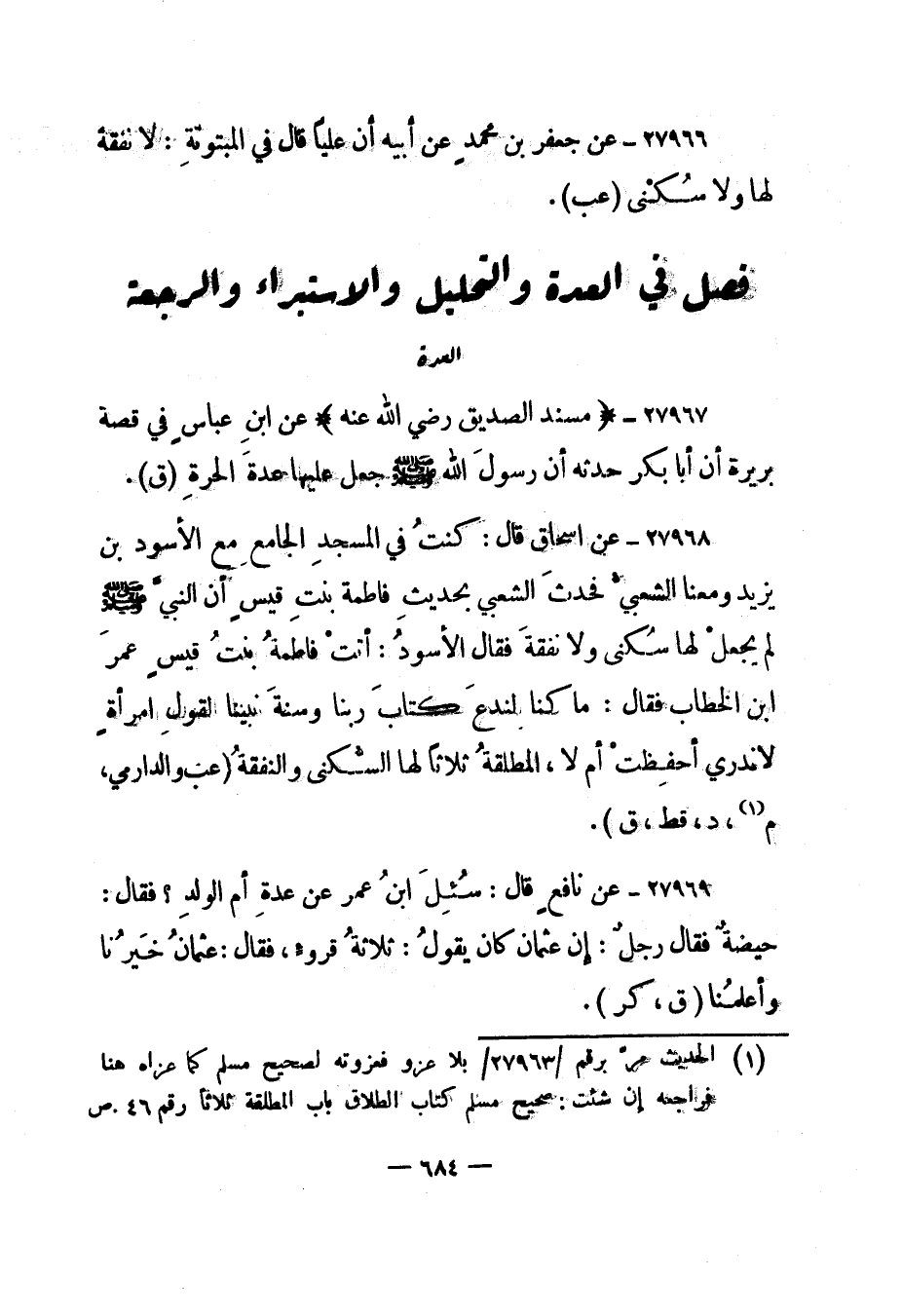 27967- "مسند الصديق رضي الله عنه" عن ابن عباس في قصة بريرة:أن أبا بكر حدثه أن رسول الله صلى الله عليه وسلم جعل عليها عدة الحرة". "ق".