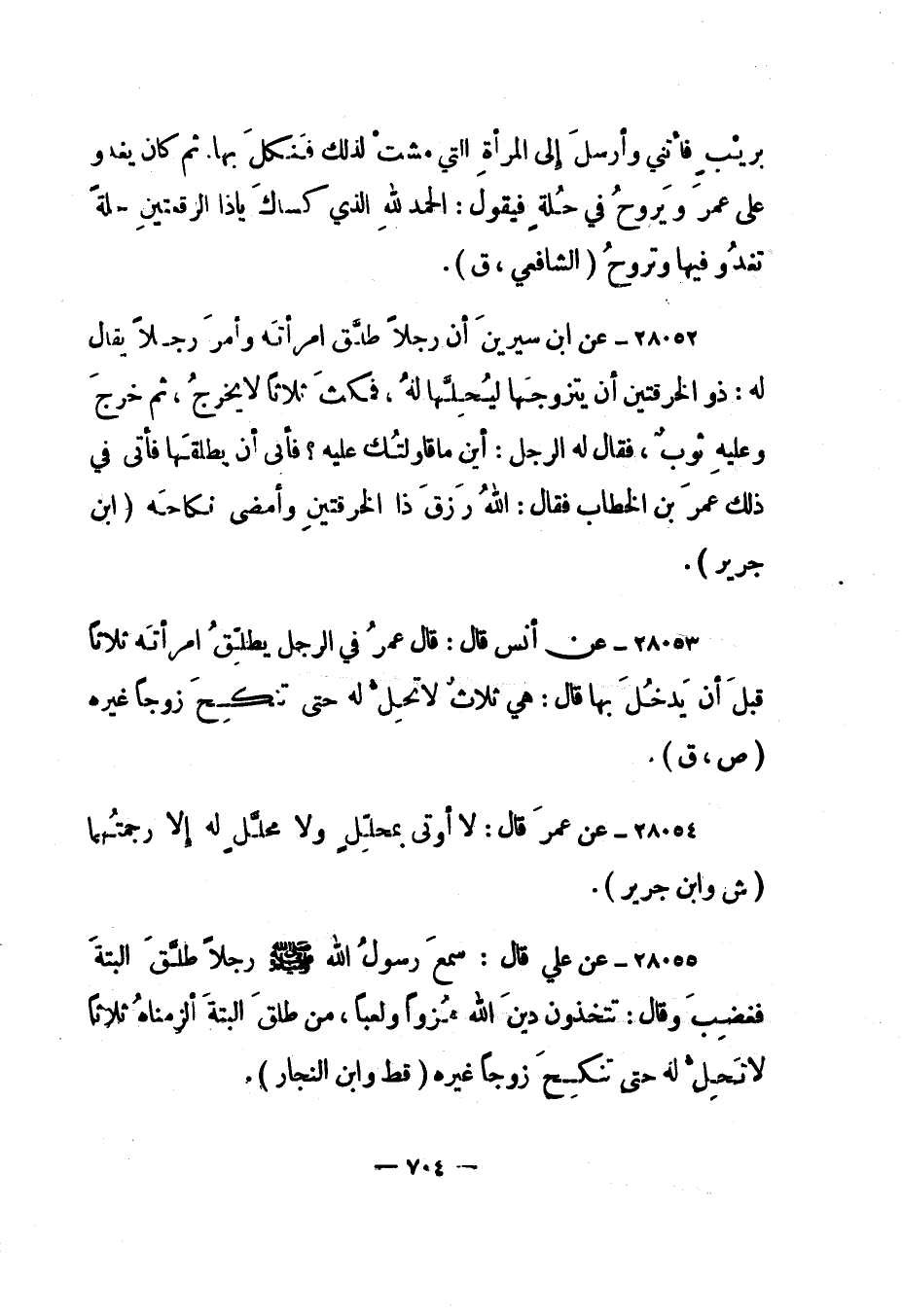 28052- عن ابن سيرين "أن رجلا طلق امرأته وأمر رجلا يقال له: ذو الخرقتين أن يتزوجها ليحلها له، فمكث ثلاثا لا يخرج، ثم خرج وعليه ثوب، فقال له الرجل: أين ما قاولتك عليه؟ فأبى أن يطلقها فأتى في ذلك عمر بن الخطاب فقال: الله رزق ذا الخرقتين وأمضى نكاحه". "ابن جرير".