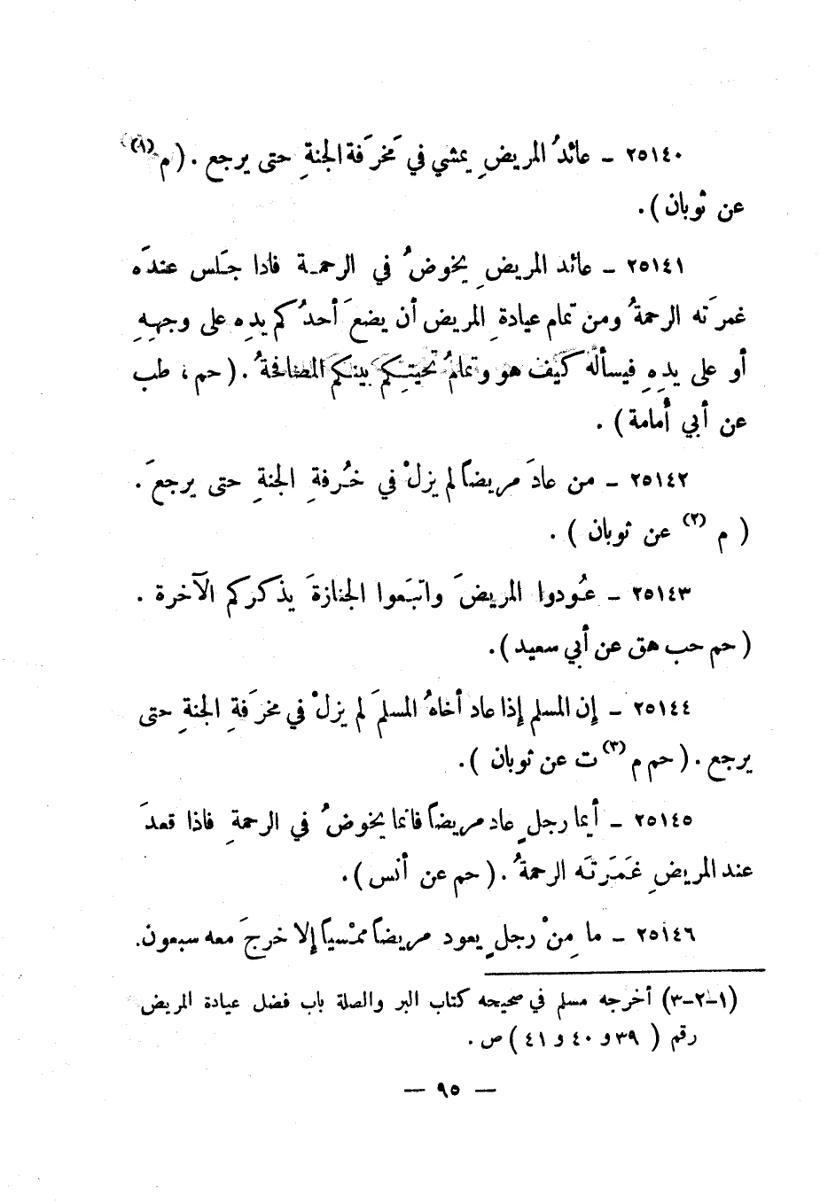 25140- "عائد المريض يمشي في مخرفة الجنة حتى يرجع". "م 1 عن ثوبان".