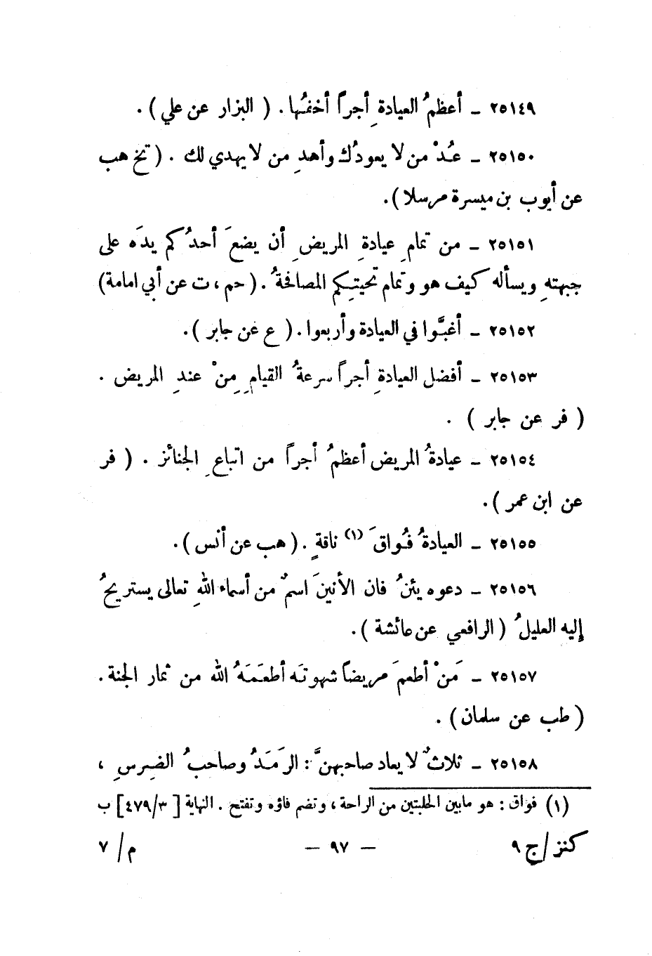 25153- "أفضل العيادة أجرا سرعة القيام من عند المريض". "فر عن جابر".